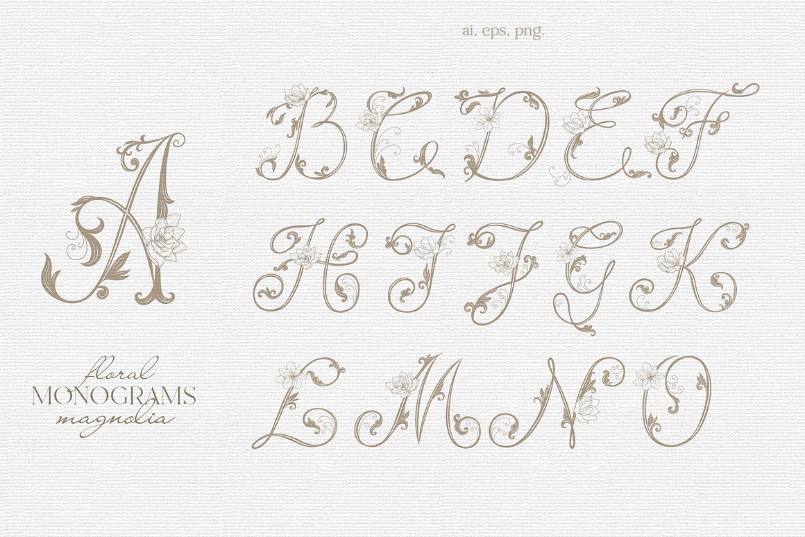 - Floral Alphabet and Ampersand with magnolia- (magnolia with a white fill), as Ai, Eps, Png 8333×8333 px, 300dpi