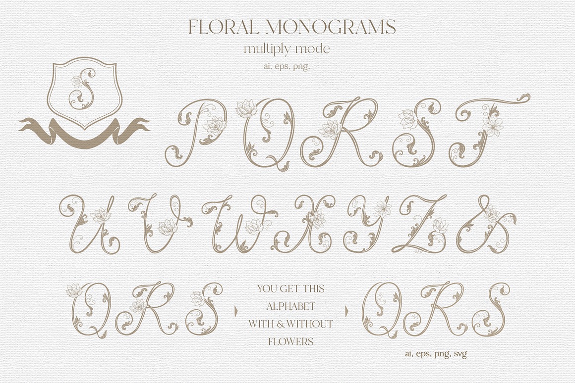 - 26 Floral Monogram (flowers with a white fill), as Ai, Eps, Png 5000×5000 px, 300dpi