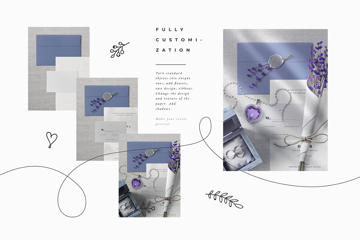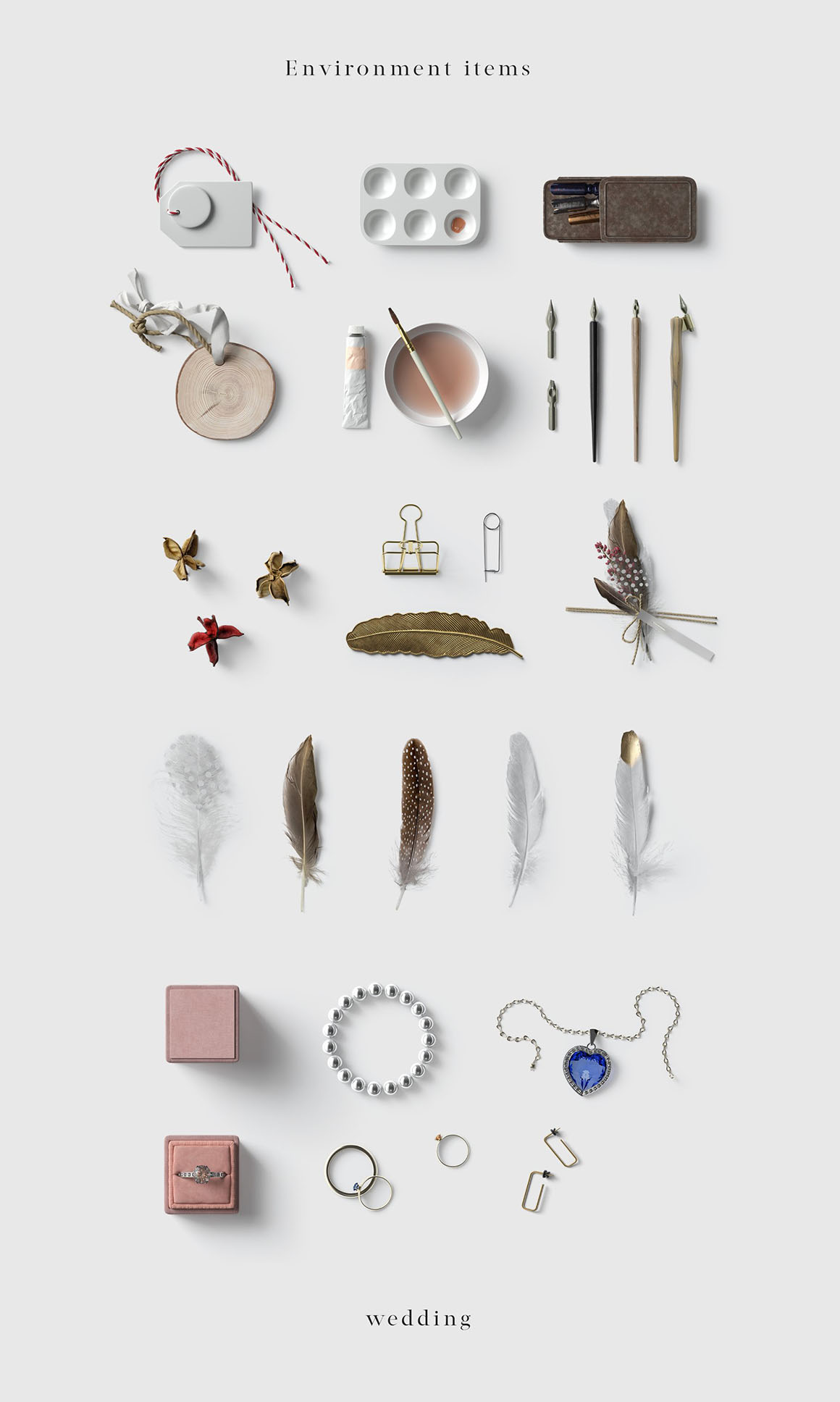 If you are looking for some professional wedding or fancy stationery 3D scene creator for Adobe Photoshop with attractive TOP view then you are at the right place because here you will get amazing bundle with 18 premade scenes & 320+ unique items in wedding, beauty or branding theme. Great for your branding, headers, web projects, art projects, typography or any print projets!