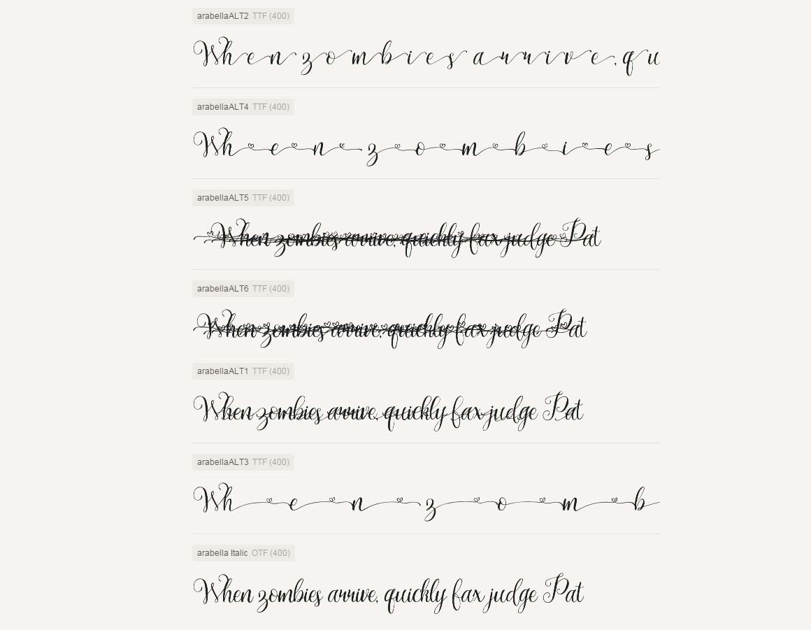 Arabella is handmade script font cooked with feeling. Including a tons of glyphs, alternates, ligatures. Can be used for various purposes; headings, signature, logos, wedding invitation, t-shirt, signage, lable, posters, badges etc. To enable the OpenType alternates, you need a program that supports OpenType features such as Adobe Illustrator CS, Adobe Indesign. There are additional ways to access alternates/glyphs, using Character Map (Windows), Nexus Font (Windows) or a software program such as PopChar (for Windows and Mac).