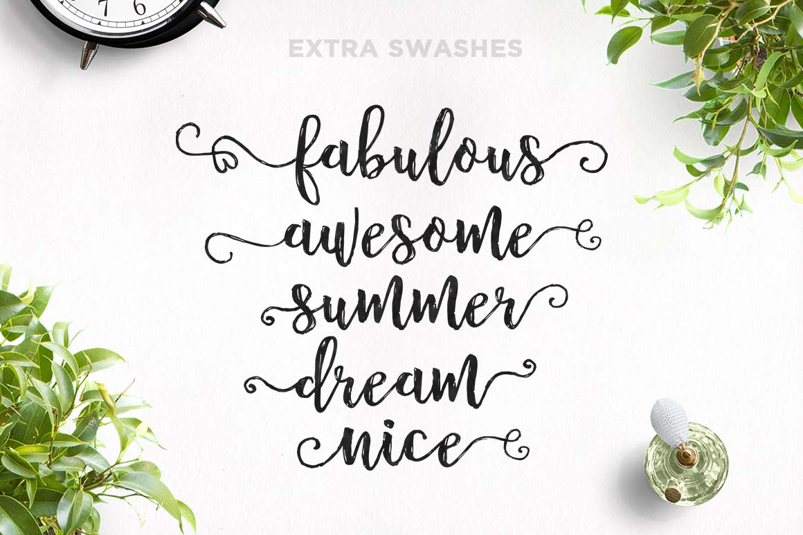 Fabulous Script is a beautiful handpainted script, organic, fun with dancing baseline and different swashes that can be applied to the beginning and ends of all lowercase.