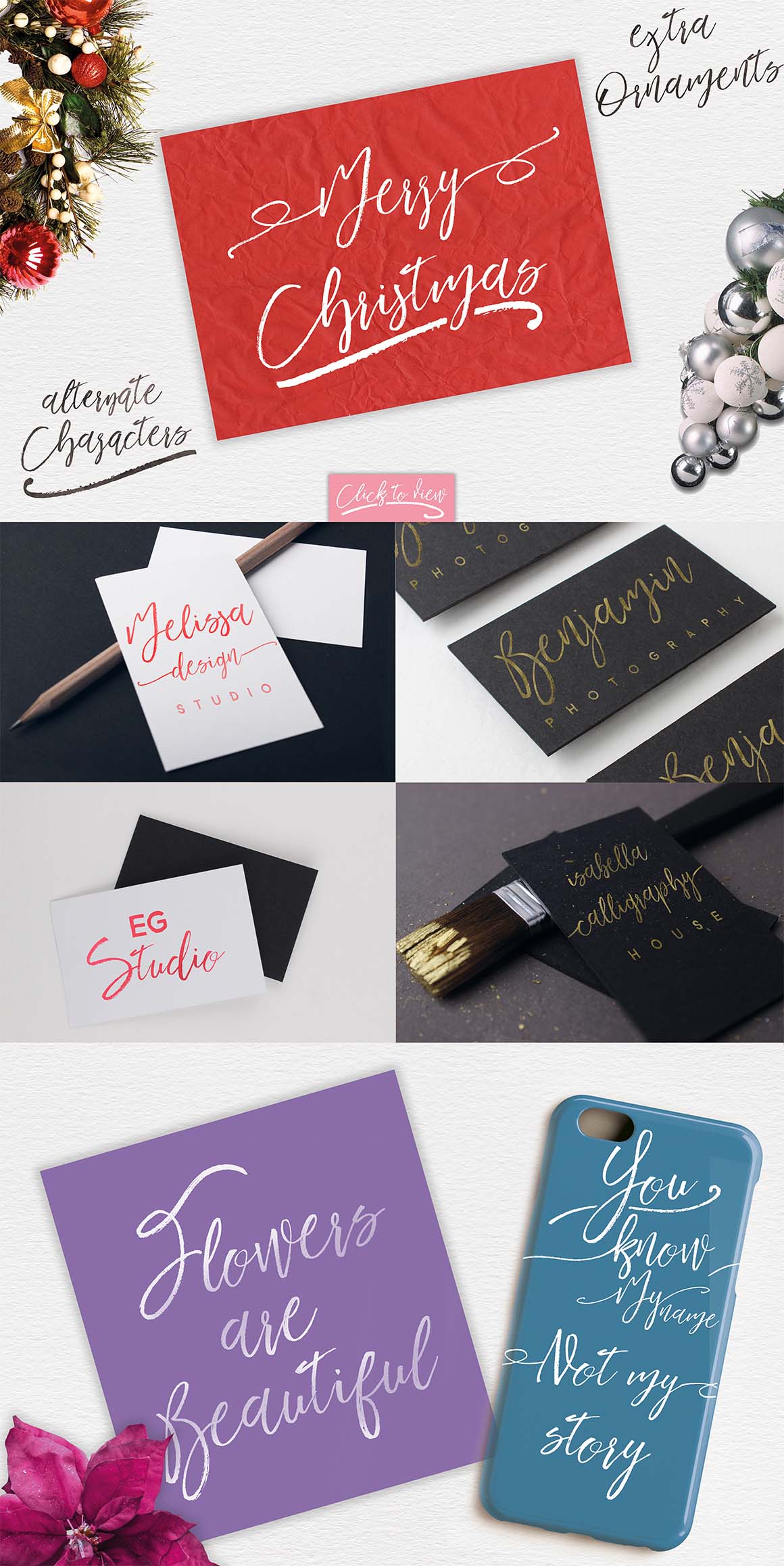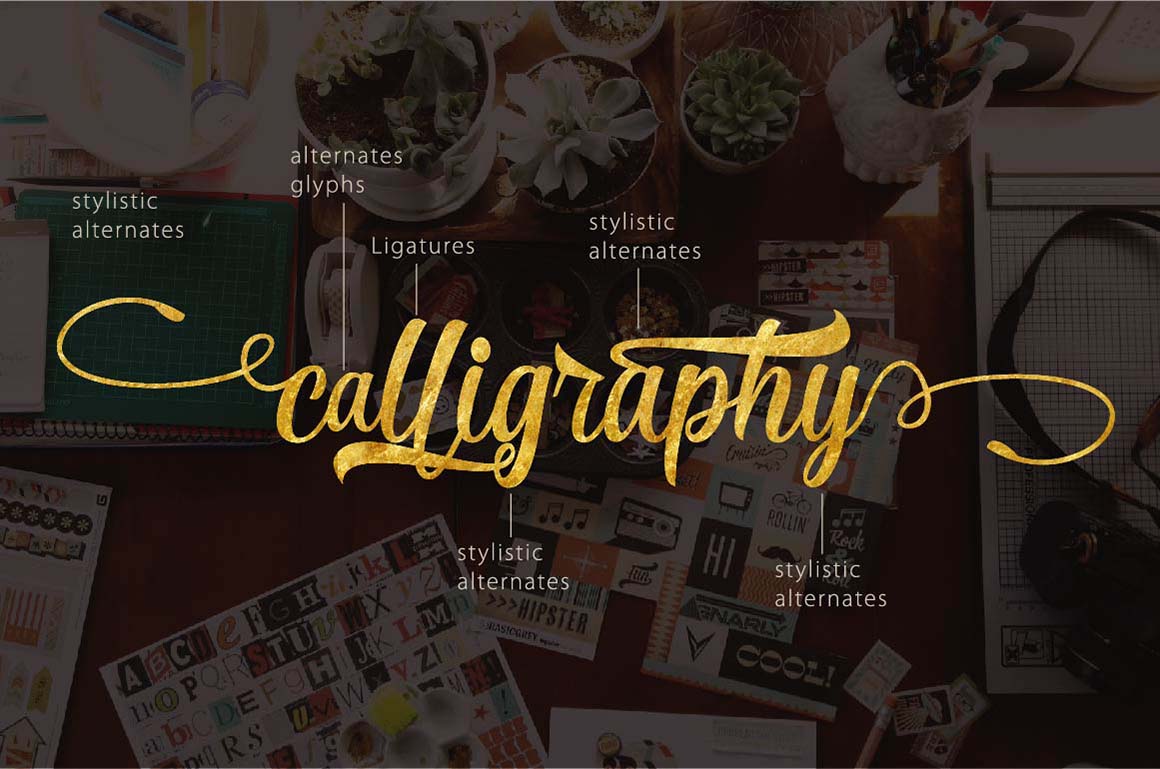 A hand-lettered script inspire from elegant nuance,nurturing love, feminine, sophisticated, and luxury. In total 389 glyphs combinations, creating an authentic hand lettered style.