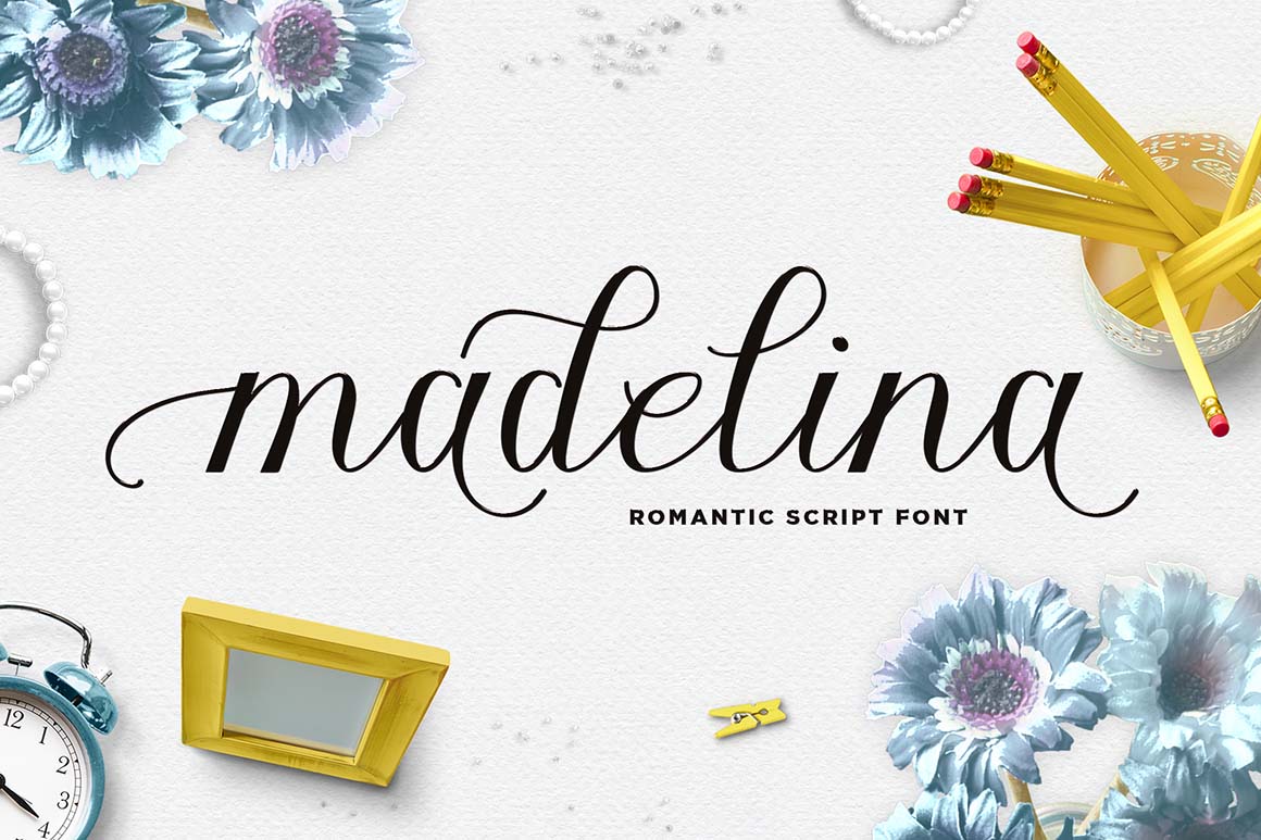 Madelina Script is a formal calligraphy script font, classic and elegant touch.With almost 255 glyphs.Opentype features with stylistic alternates, ligatures and multiple language support. Can be used for various purposes.such as logos, wedding invitation, heading, t-shirt, letterhead, signage, lable, news, posters, badges etc. To enable the OpenType Stylistic alternates, you need a program that supports OpenType features such as Adobe Illustrator CS, Adobe Indesign & CorelDraw X6-X7, Microsoft Word 2010 or later versions. Thanks and happy designing 🙂 Enjoy!