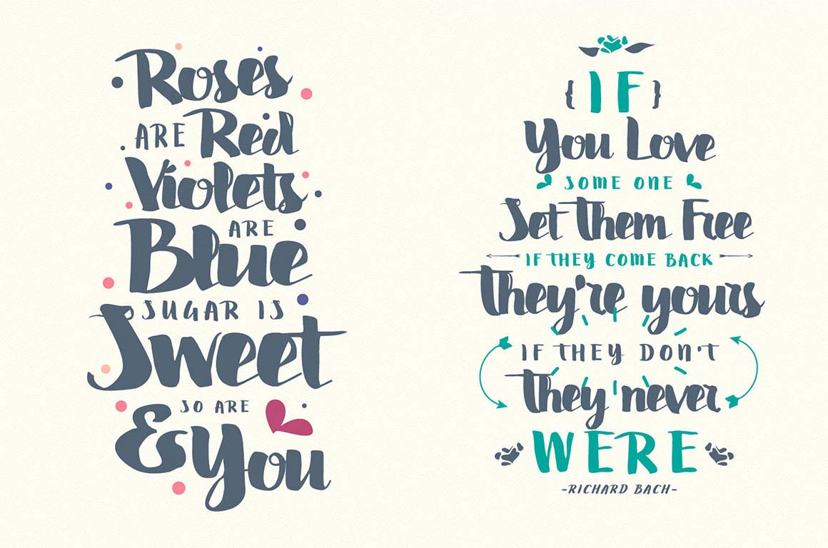 Sweetiest typeface was inspired from something lovable, partnership, poetry, and romantic nuance. Combine with hand drawn brush make the typeface looks very natural and cute.