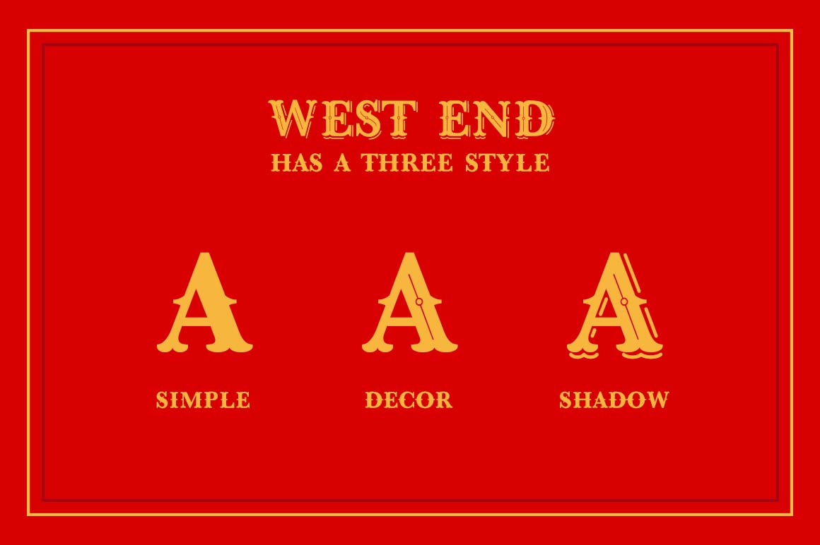 West End is a new display typeface inspired by early 20th century elegant hand drawn advertising sign and facades decor. Very good for your vintage look project: t-shirts, cards, posters, etc.