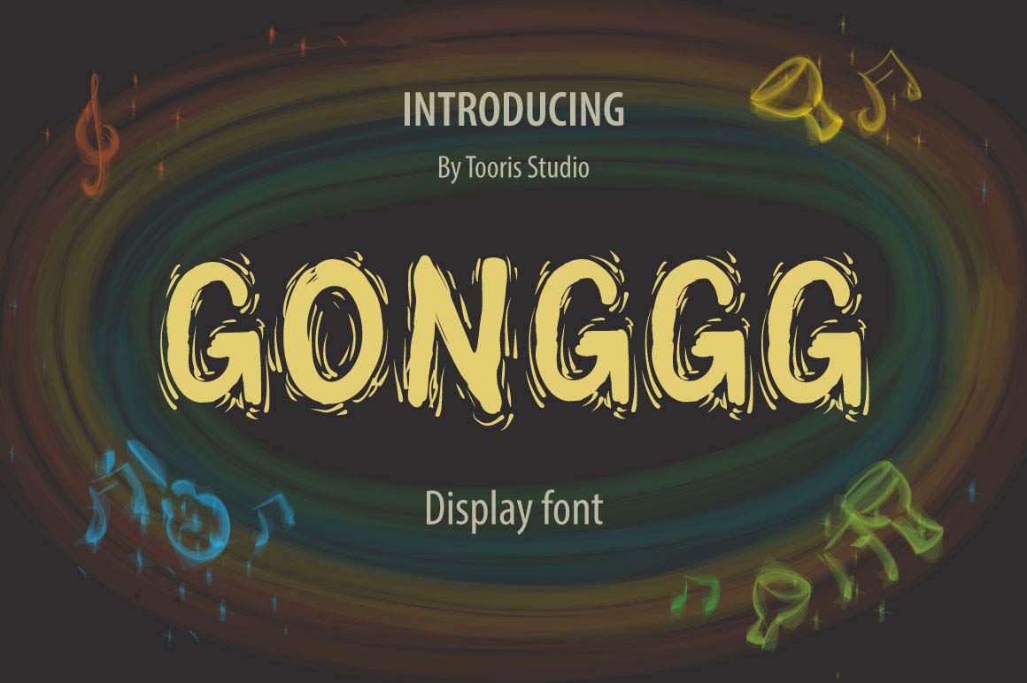 Font Gong is a type of display font that gives the impression of sound effects like sounds. Font is temporarily only available in uppercase format, but you can still make relevant display beat creation and the buzzing sound of music. for example, to the needs of the inscription on the T-shirts, Cards, Invitations, posters, etc.