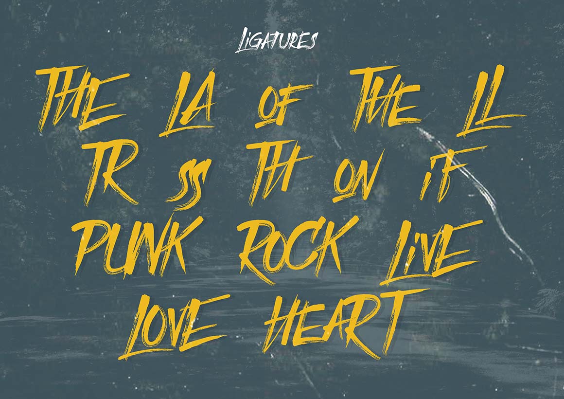Brother In Crime inspired by a handwriting on the wall of a slum. Then packed without prejudice to the texture of paint used to write it. Brothers In Crime is very suitable for the design of concert music, rock, metal, punk and more. Can also be used for purposes other designs.