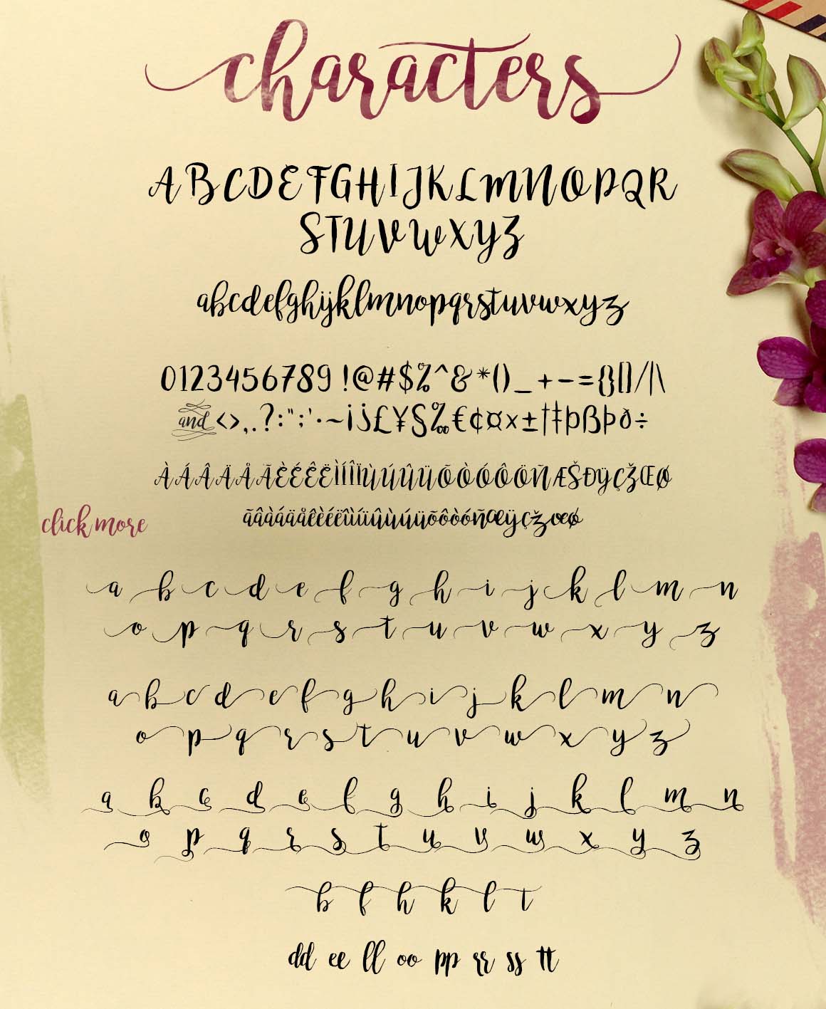 Bonita Script is handwritten stylish copperplate calligraphy fonts, combines from copperplate to contemporary typeface with a dancing baseline, classic and elegant touch. Can be used for various purposes.such as headings, signature, logos, wedding invitation, t-shirt, letterhead, signage, lable, news, posters, badges etc. including initial and terminal letters, alternates, ligatures and multiple language support unicode pua.