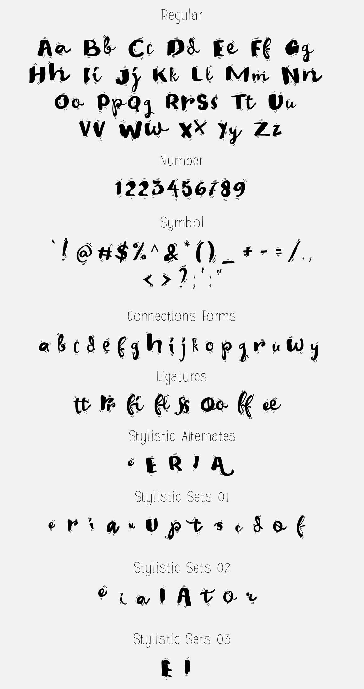Can be used for various purposes namely headings, logos, wedding invitations, t-shirts, letterheads, signages, labels, news, posters, badges etc. Use a program that supports OpenType features such as Adobe Illustrator CS, Adobe Indesign & CorelDraw X6-X7 to access the full features of this typeface.