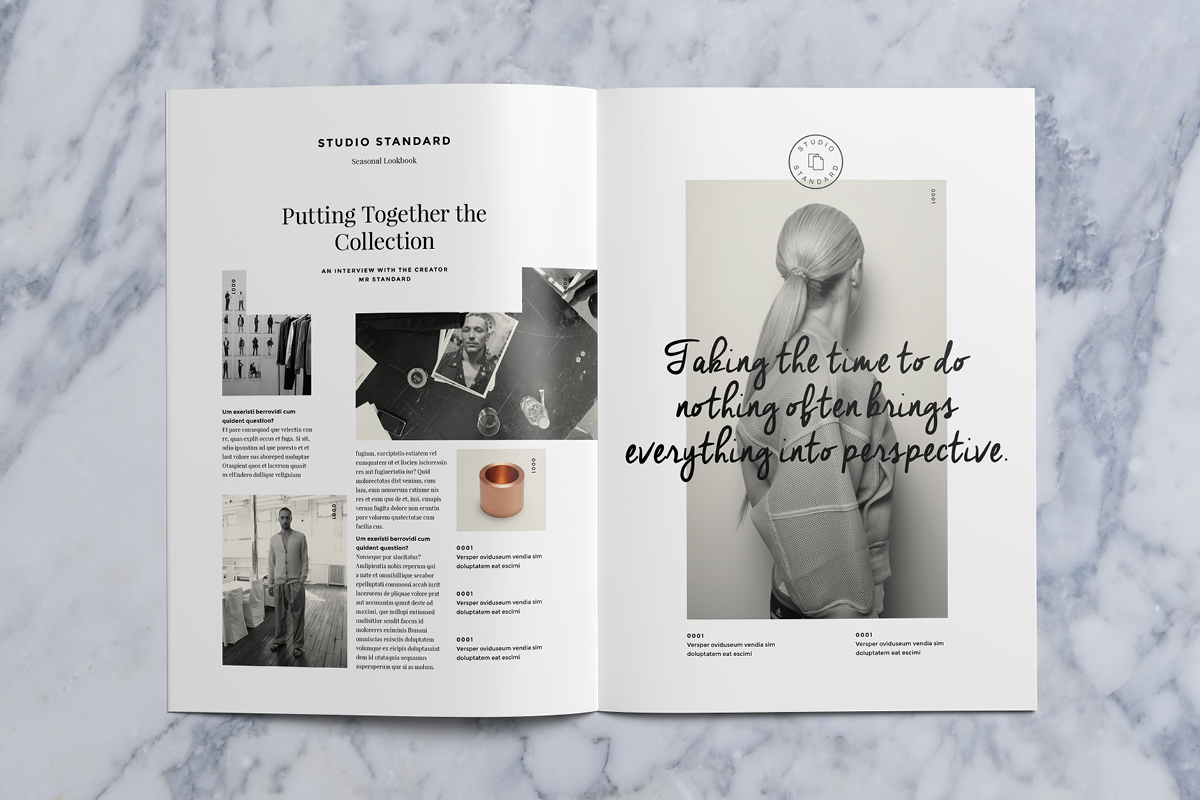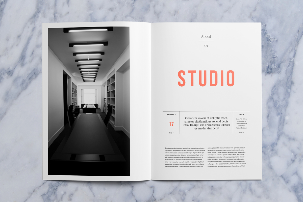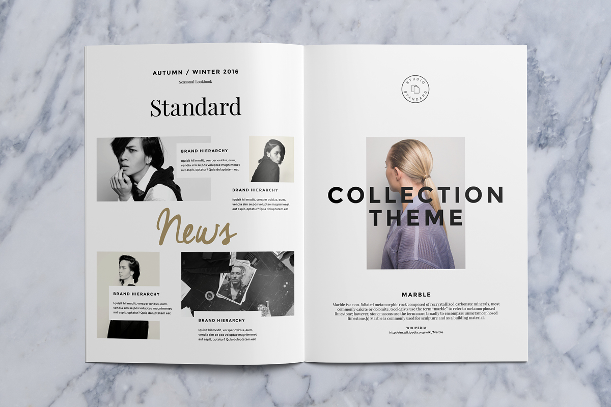 The Studio Lookbook template is a 24 page Indesign brochure template available in both A4 and US letter sizes. Each page features unique layouts with strong, contemporary typography. This template would work well for Fashion, Photography, Food, Product and Design. 24pp Indesign Document / 2 sizes: A4 & US letter / Compatible with Adobe Indesign CS4, CS5, CS5.5 & CS6 / Includes .IDML file / Paragraph and Character Styles / Edit brand colors through palette / Aligned to a 12 Column Grid / Master Pages / Images, Text and Background on separate layers / Uses free fonts / Help File.