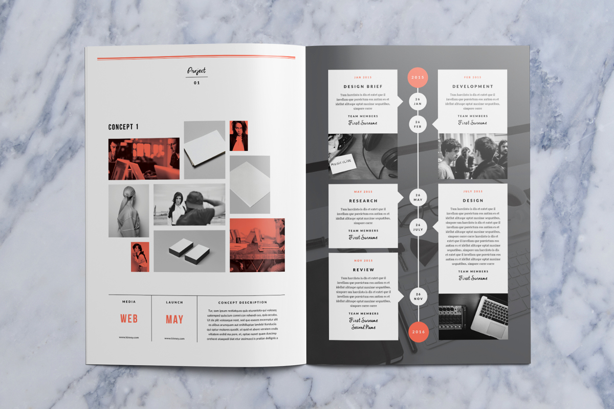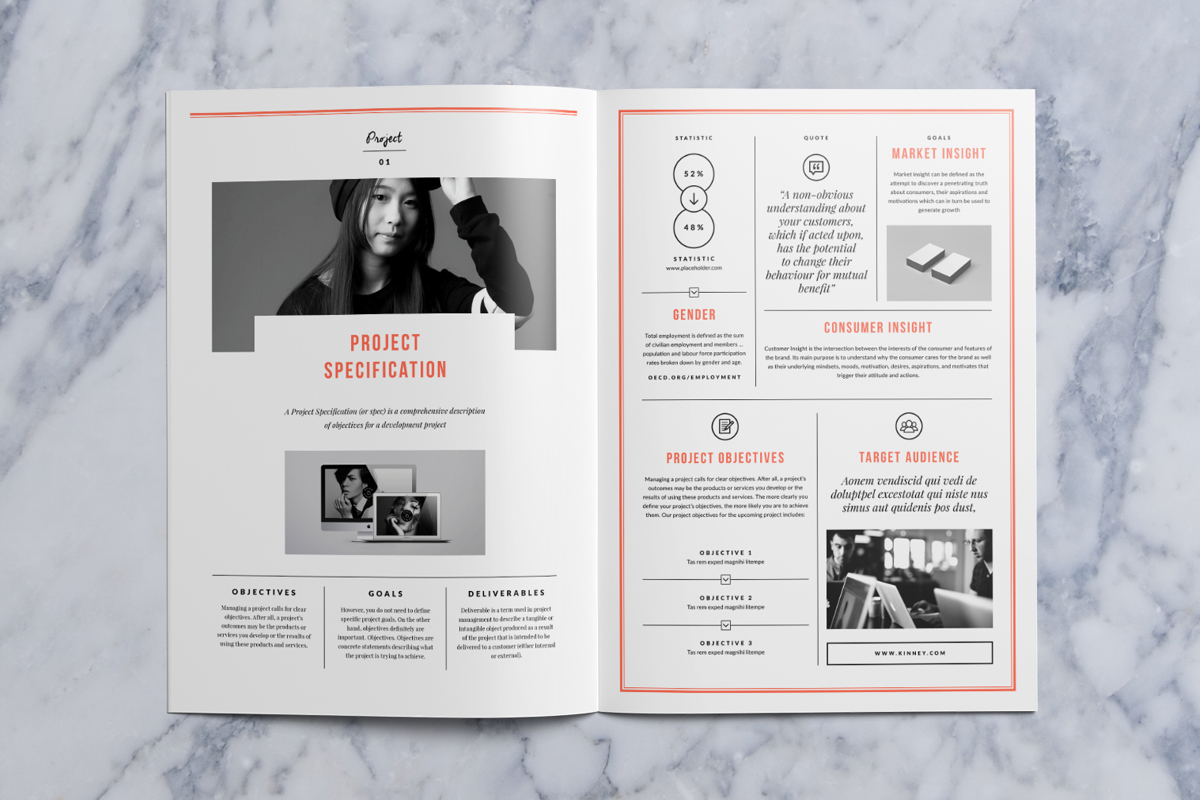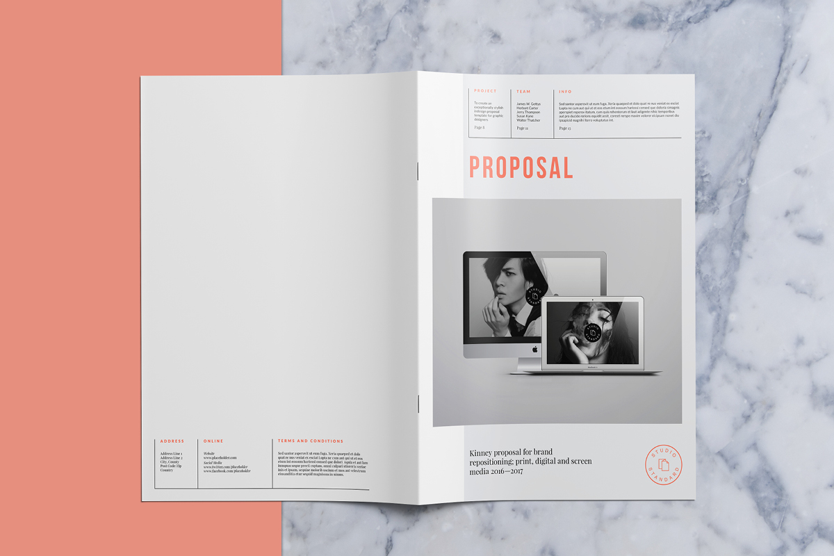 The Kinney Proposal template is a 16 page Indesign brochure template available in both A4 and US letter sizes. This template is for use as a Proposal / Estimate / Client Services / Agency or Studio Brochure. 16pp Indesign Document / 2 sizes: A4 & US letter / Compatible with Adobe Indesign CS4, CS5, CS5.5 & CS6 / Includes .IDML file / Paragraph and Character Styles / Edit brand colors through palette / Aligned to a 12 Column Grid / Master Pages / Images, Text and Background on separate layers / Uses free fonts / Help File.