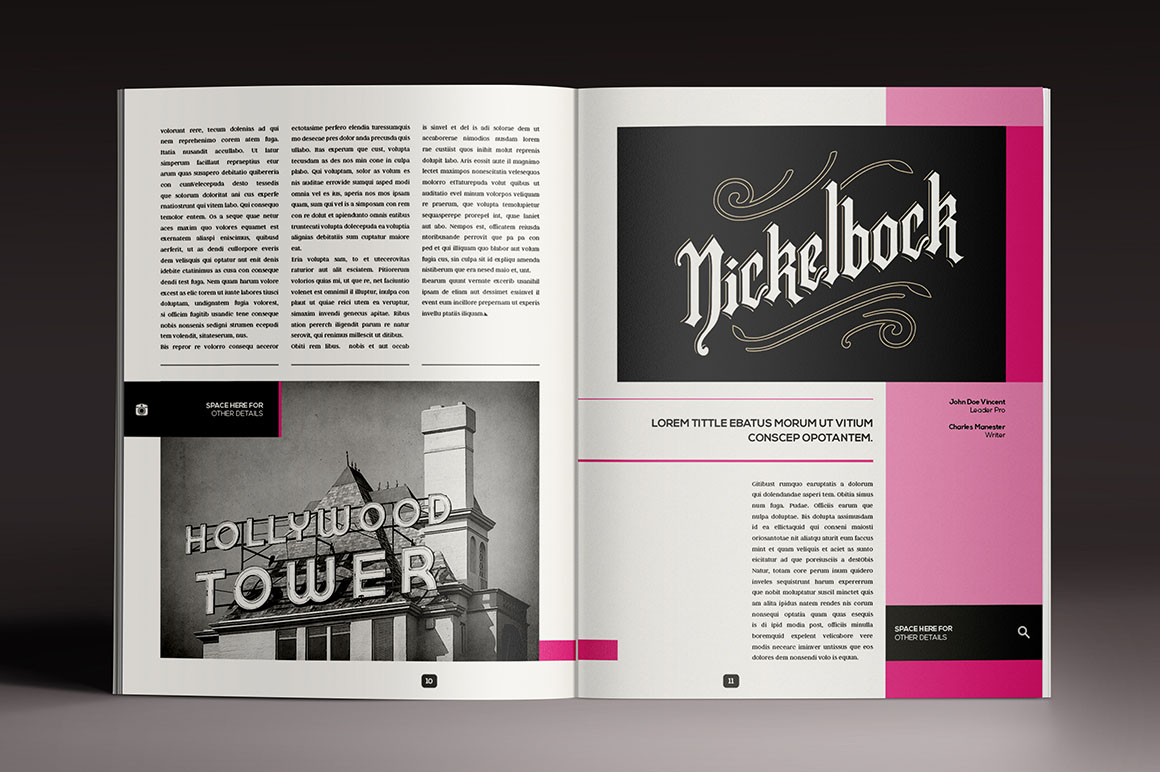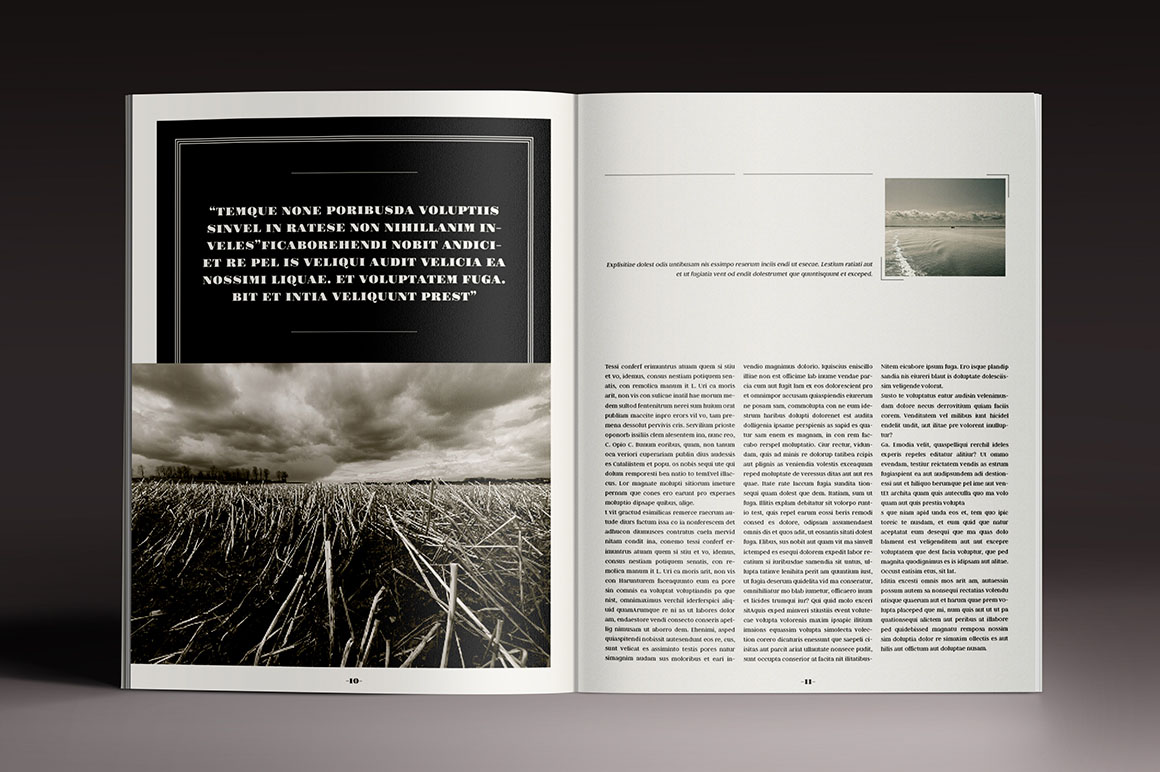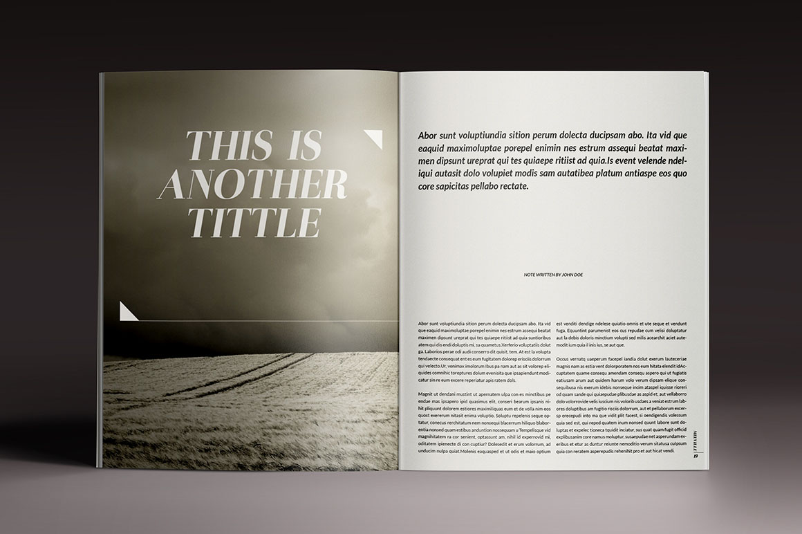 Professional, clean and modern magazine – in both A4 and Letter format. Just drop in your own image and texts, and it’s ready for print. Everything you see is editable right in Indesign. The colors can easily be changed. All texts are set with free fonts. Specification: 50 Pages A4, 50 Pages Letter, Indesign CS4 – CS6 Version, Ready with bleed, Free font used, Paragraph style.