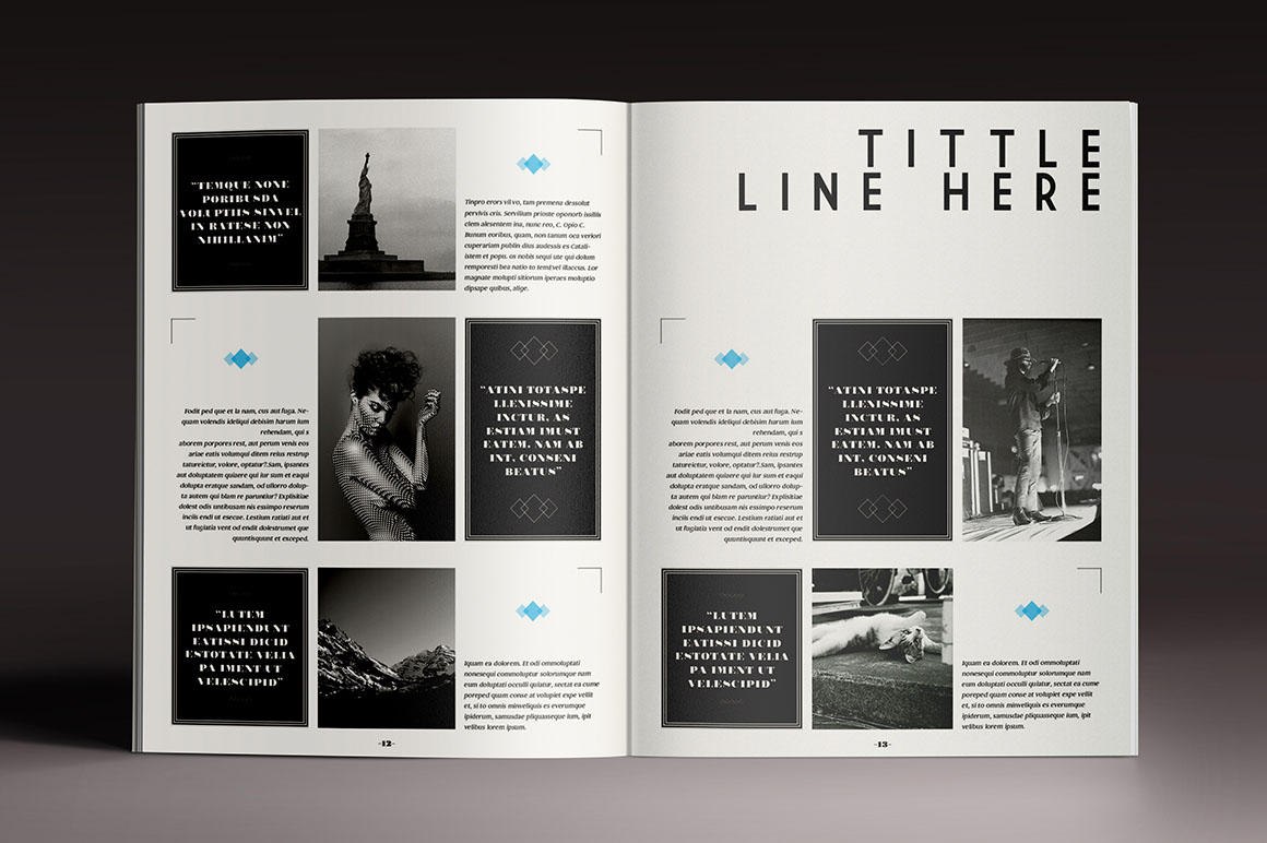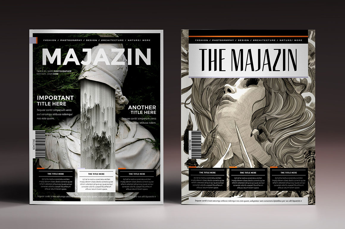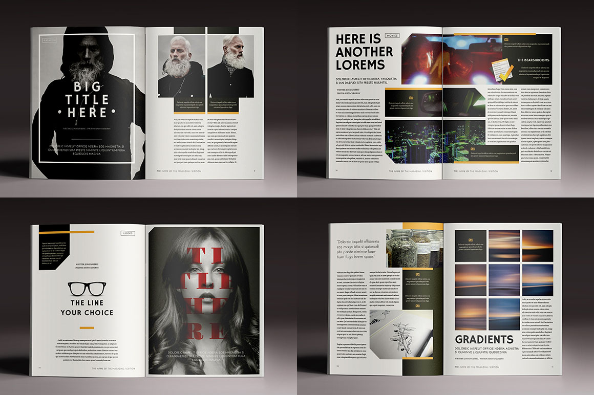 InDesign Magazine Template: 20 Pages | 2 cover options | ad template. Features: 20 pages, Letter size 8.5” x 11”, Bleeds 5 mm, Automatic page numbering, Print ready, Easy to modify, White tittle header included.