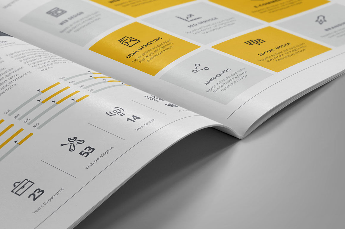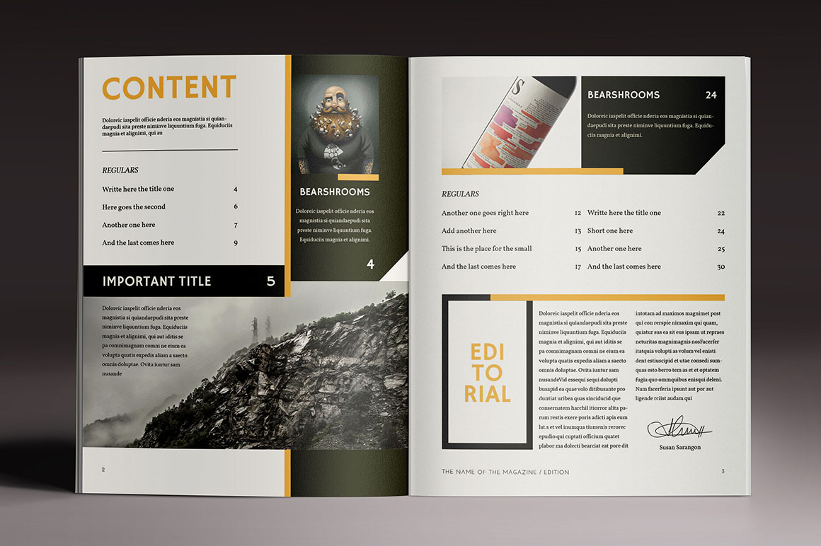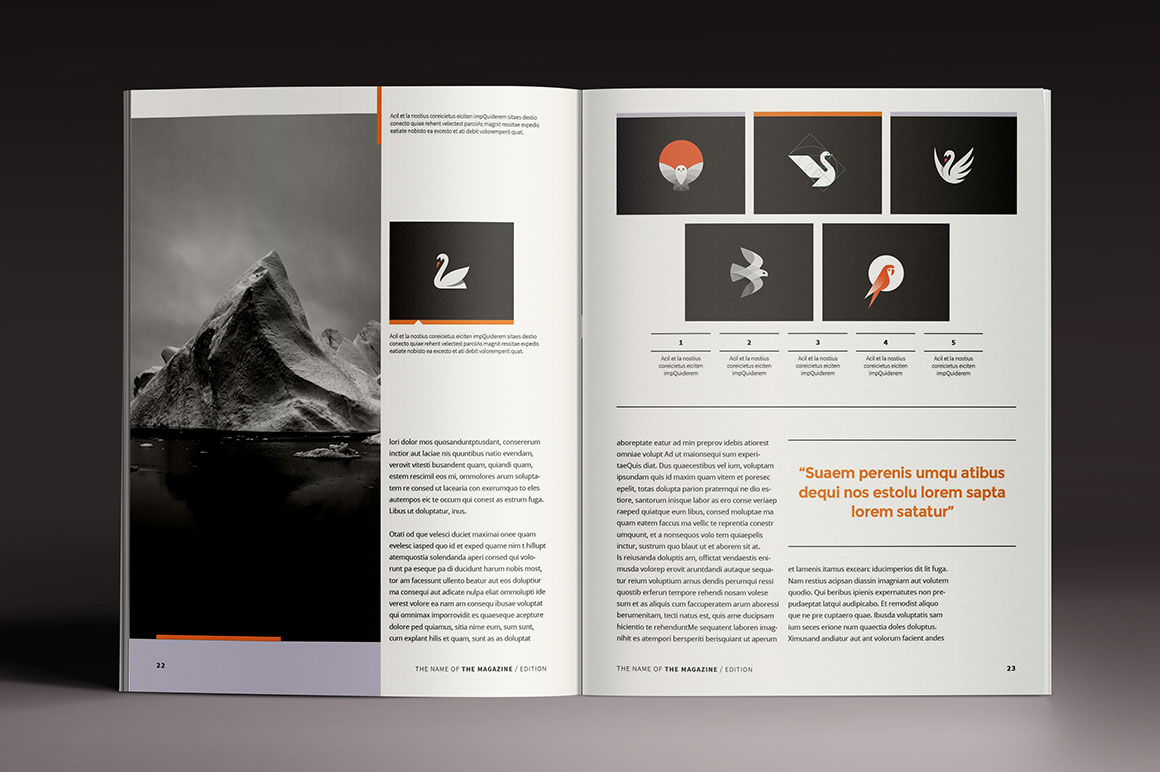 Specification: 50 Pages A4, 50 Pages Letter, Indesign CS4 – CS6 Version, Ready with bleed, Free font used, Paragraph style. Professional, clean and modern magazine – in both A4 and Letter format. Just drop in your own image and texts, and it’s ready for print. Everything you see is editable right in Indesign. The colors can easily be changed. All texts are set with free fonts.