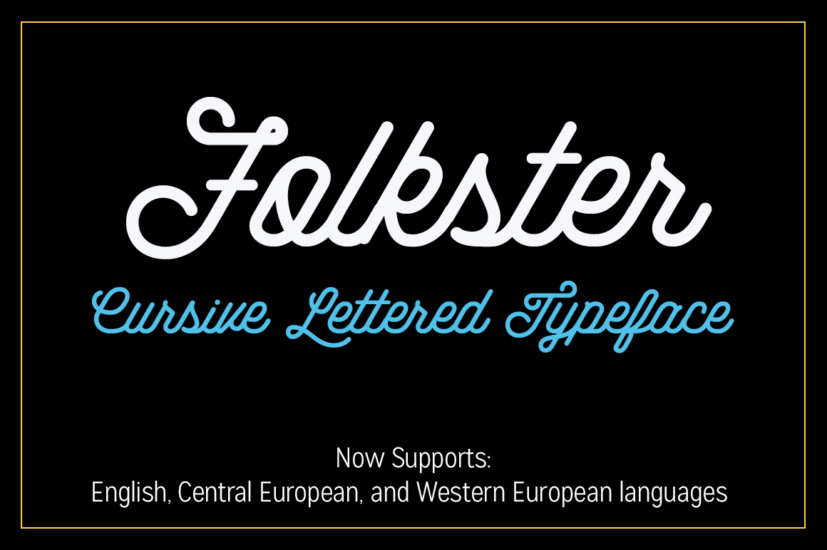 Folkster is a mono-weight cursive script font created in a hand lettered style. Folkster includes a full alphabet with all characters, numerals and supporting glyphs. Font file is .otf format. Languages Supported: English, Central European, Western European.