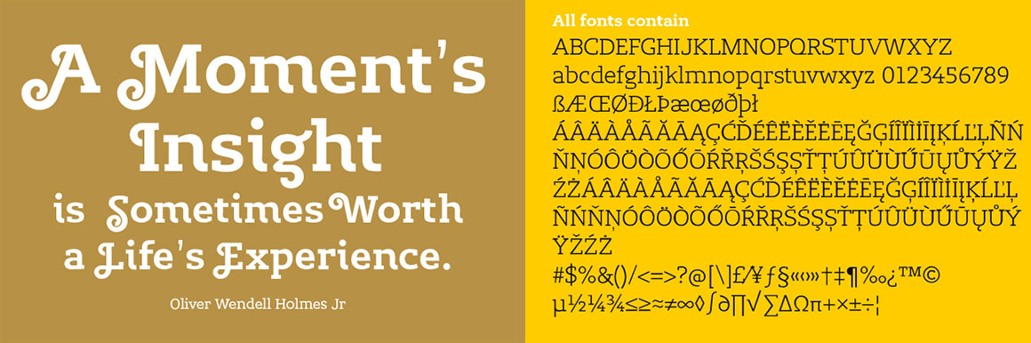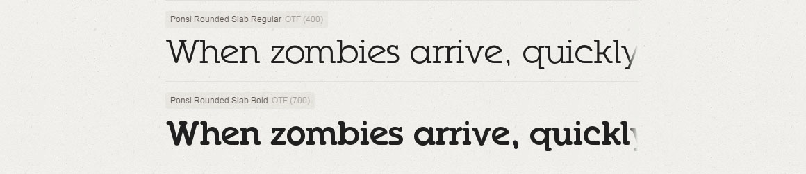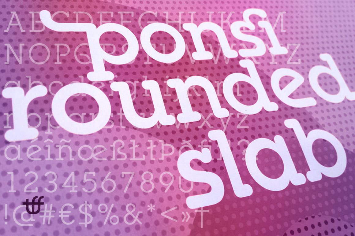 Ponsi Rounded Slab is a slab serif with round corners. It is a firm and robust font with a friendly feel. Ponsi is in OpenType format. All weights contains an extended set of ligatures, swashes en alternatives. A font fun to play with.
