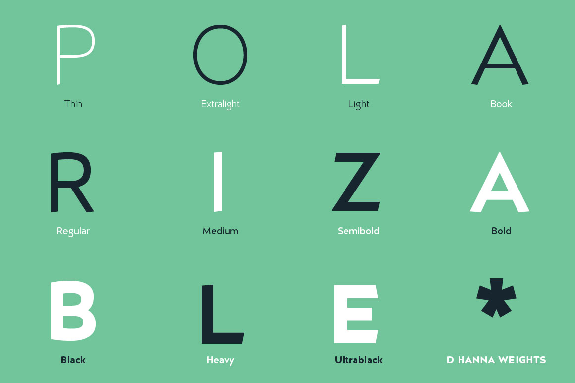 D Hanna is a typeface that has 22 variants. It’s inspired by 1920s German modernism as well as by the neohumanist typeface of the ‘90s. It has a rigid structure but also an ink drawn ductus, which softens the form. In this way D Hanna represents a combination of two of the most famous typefaces of all time, the geometric and the neo-humanist typeface. D Hanna is well-suited for texts, flyers, motion graphics, brands and logos.