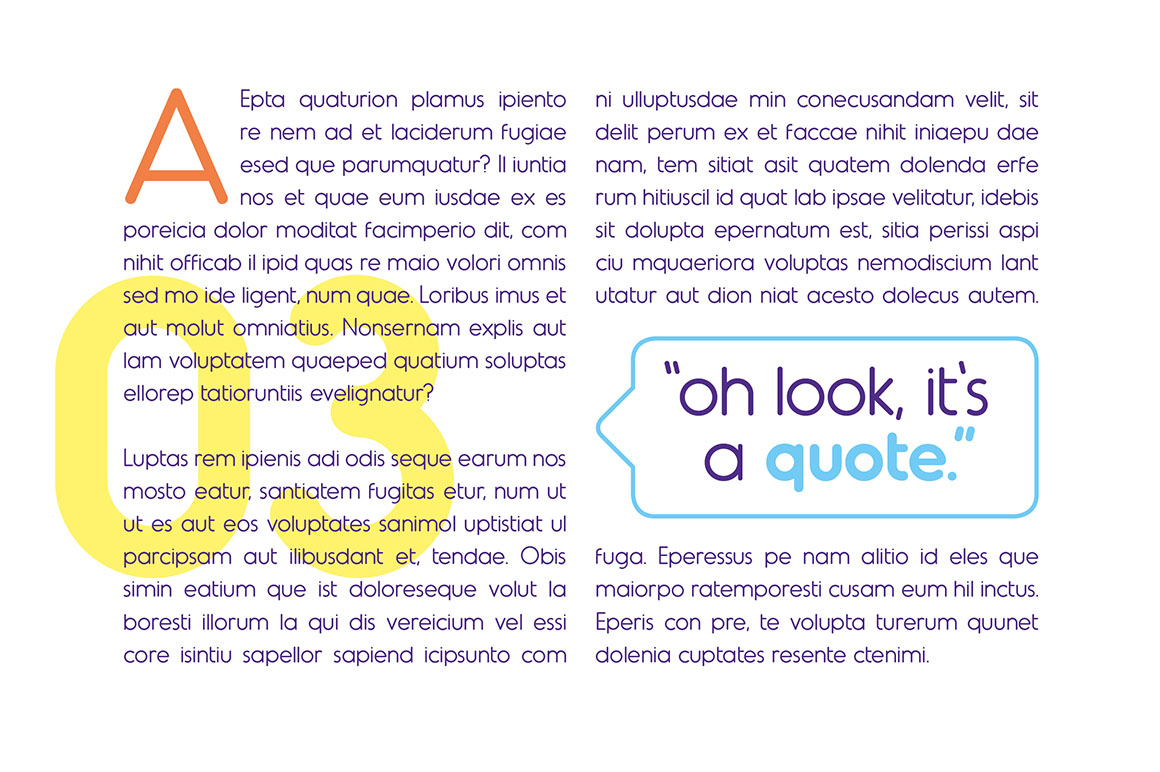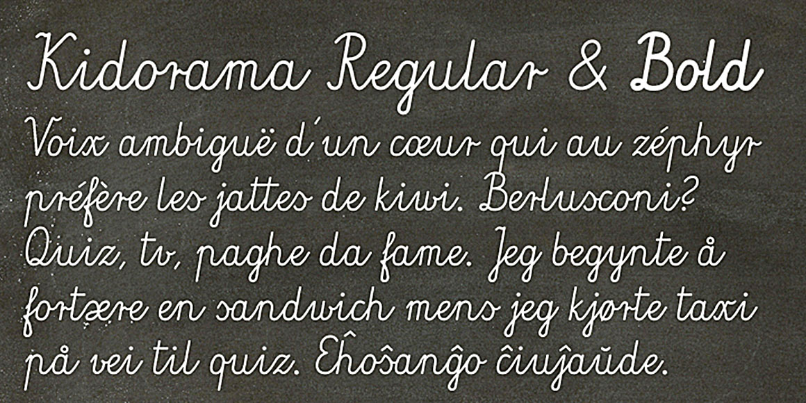 Kidorama is a hand-drawn script inspired by the calligraphic models used in Polish primary school. This font is perfect for use in children’s oriented publishing. Language support includes Western, Central and Eastern European character sets, as well as Baltic and Turkish languages.