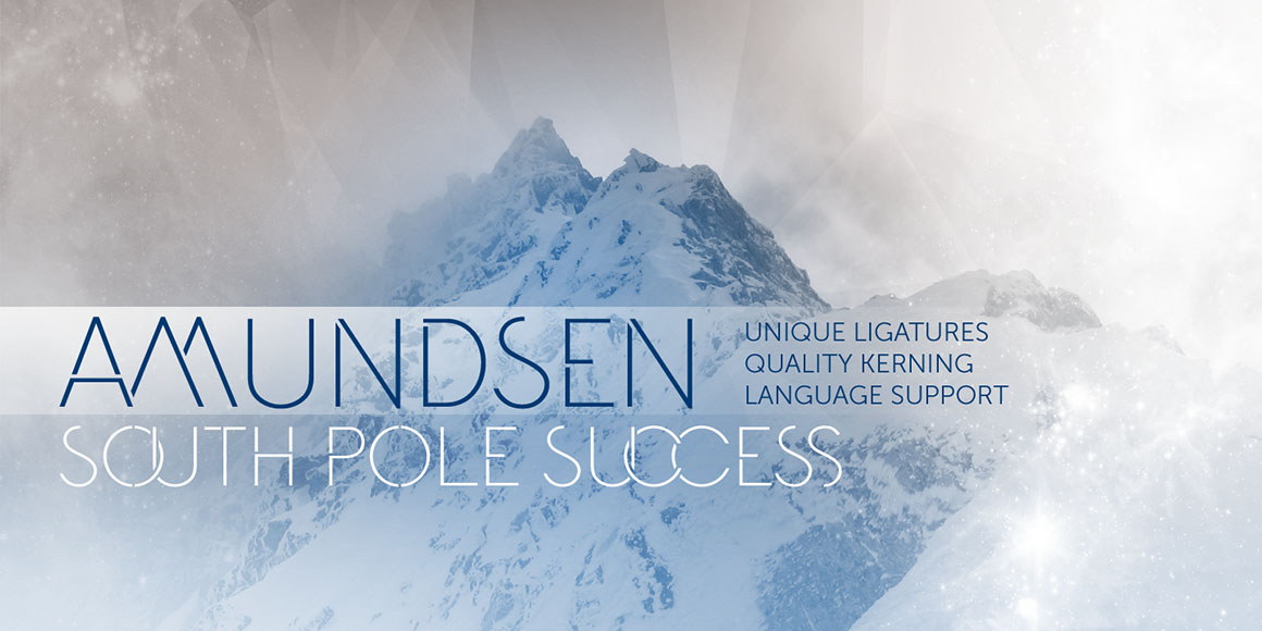 Amundsen is an all-caps stencil-like face with a unique look due to several originally shaped glyphs and overlapping letters. The font is equipped with automatic discretionary ligatures and it comes with a fine-tuned kerning. As the ligatures combine light letters, the overall look remains balanced even with wider display oriented spacing. Amundsen supports West as well as Central European languages.