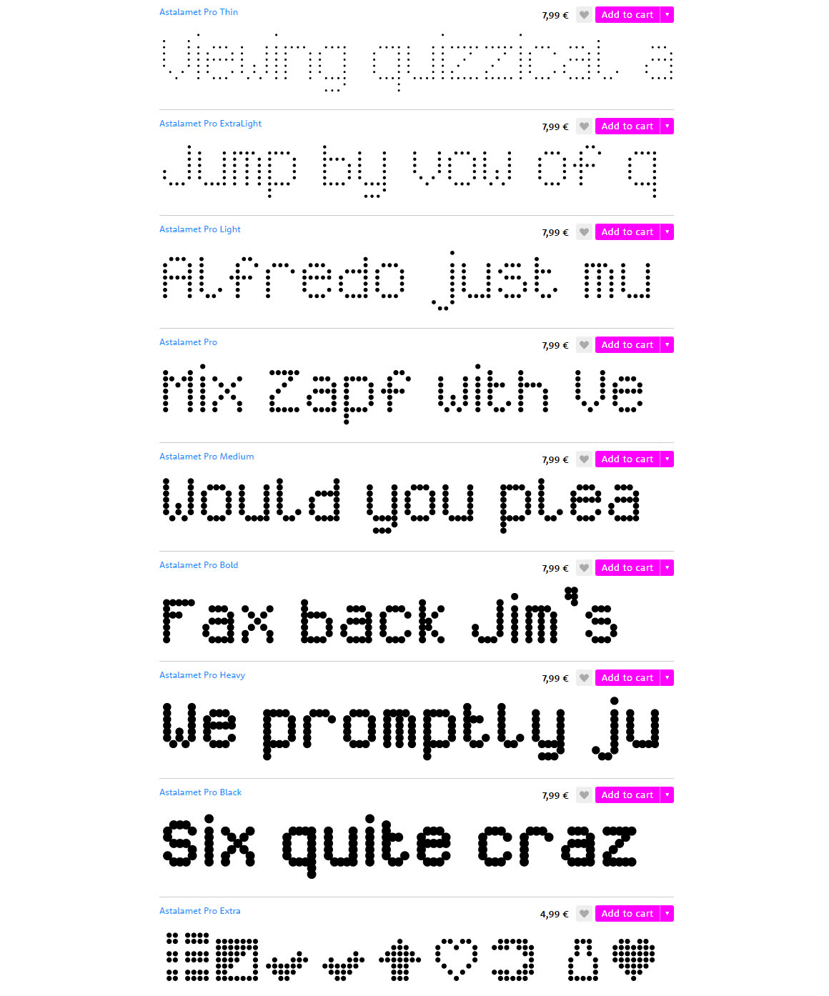Astalamet Pro is a new, completely redesigned and improved version of my font AstalametPure, which was released for the first time in 2001. Language support includes Western, Central and Eastern European character sets, as well as Baltic and Turkish languages.