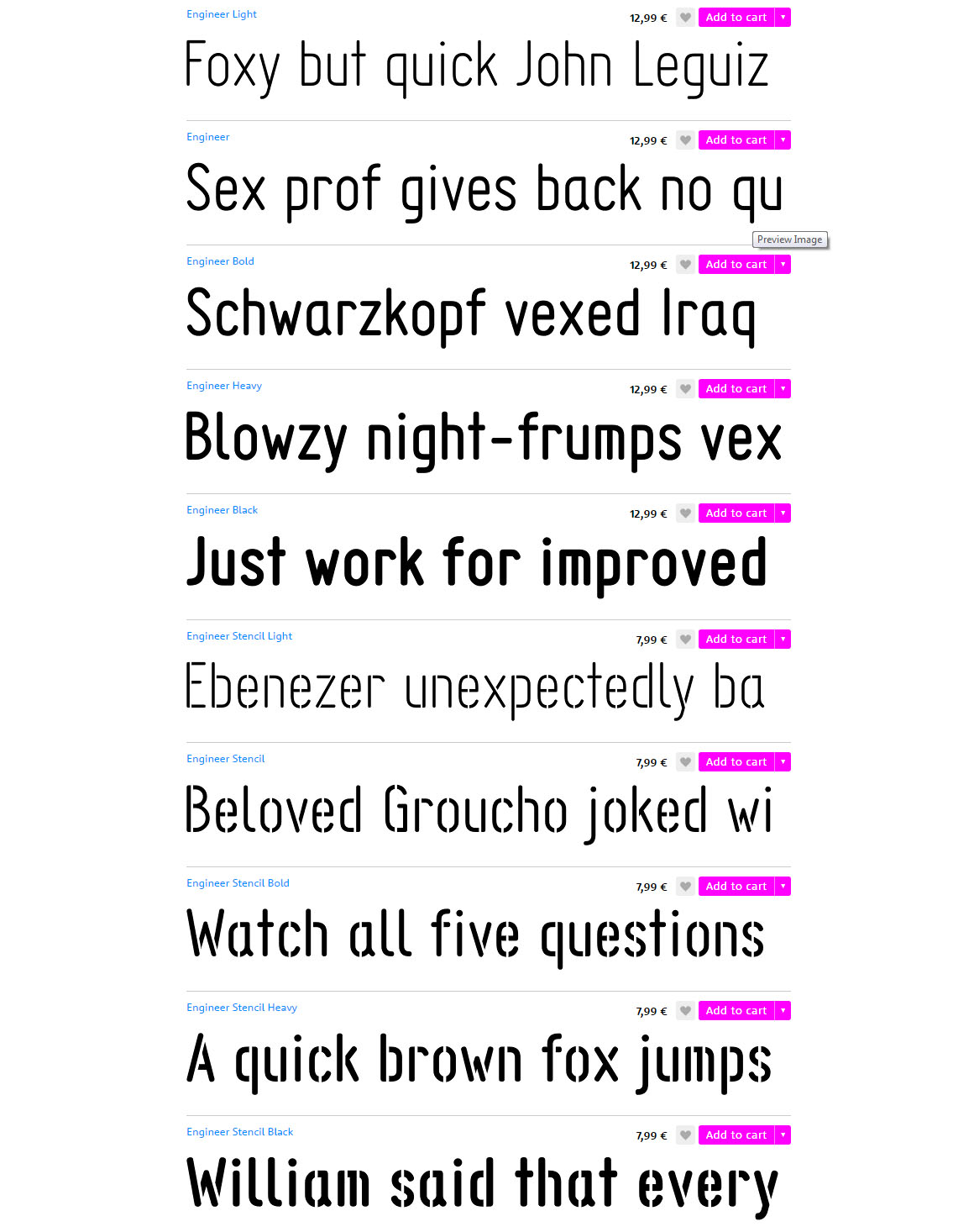 Engineer is a new, completely redesigned and improved version of my font TechnicznaPomoc, which was released for the first time in 2001. Language support includes Western, Central and Eastern European character sets, as well as Baltic and Turkish languages.