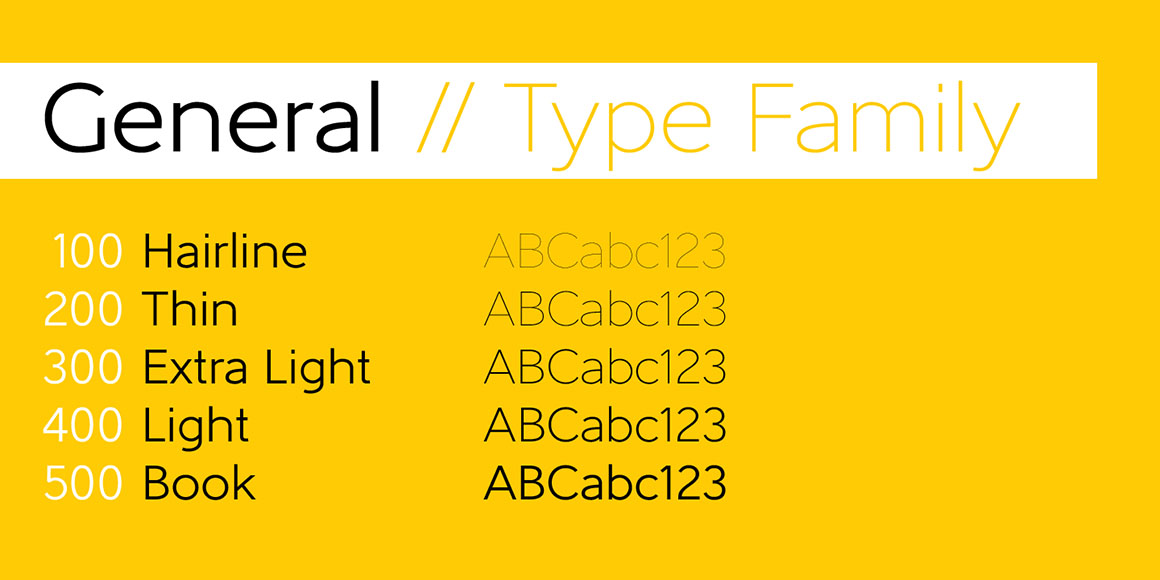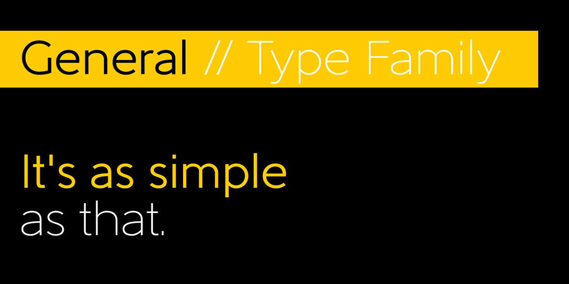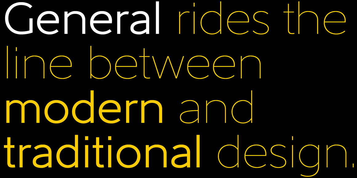 It’s all about these subtle nuances that make a neutral sans typeface different. Pure geometry with a human touch is a recipe that works in every generation. Inspired by classical fonts from the early 20th century, General rides the line between traditional and modern styles.