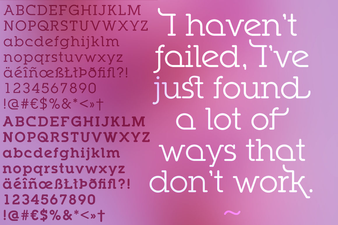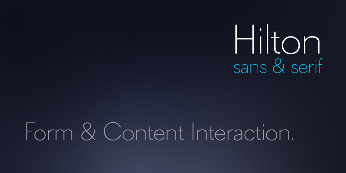 There is something special about thin fonts. On one side is the sensitive, charming and warm touch, on other side they are uncompromising, thoroughgoing. Here the contrast can’t hide the clear shapes. Hilton Sans and Hilton Serif is a pair of highly legible, subtle and elegant sans-serif and semi-serif display faces.