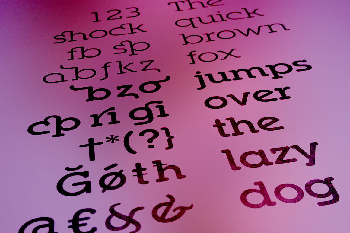 Inspired by college and university sportswear lettering. Language support includes Western, Central and Eastern European character sets, as well as Baltic and Turkish languages.