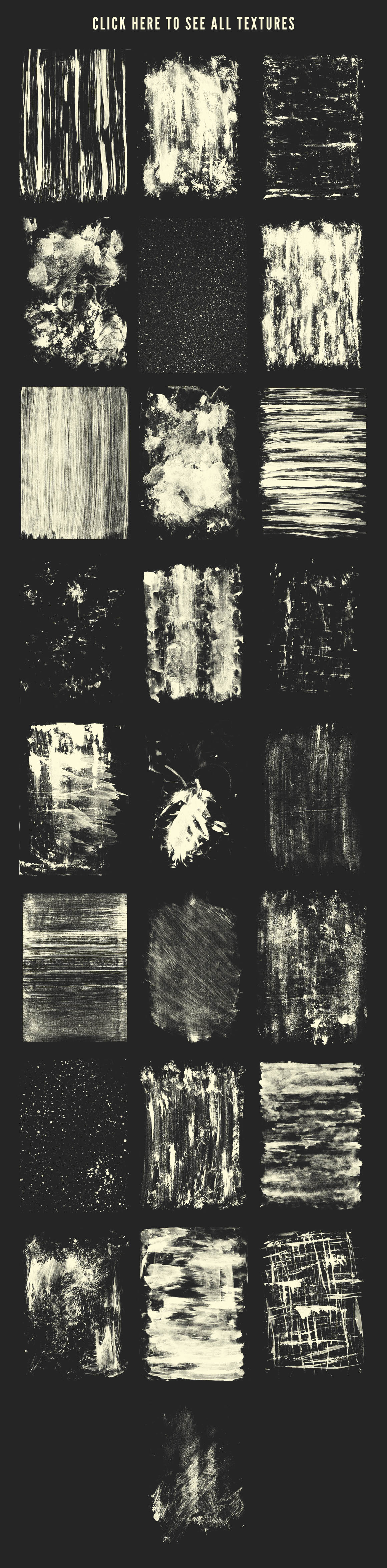 This is a set of 25 high quality handmade grunge textures that can be used in a variety of projects. Each texture comes in two formats: transparent PNG (more detailed) and EPS (easily re-sizable).