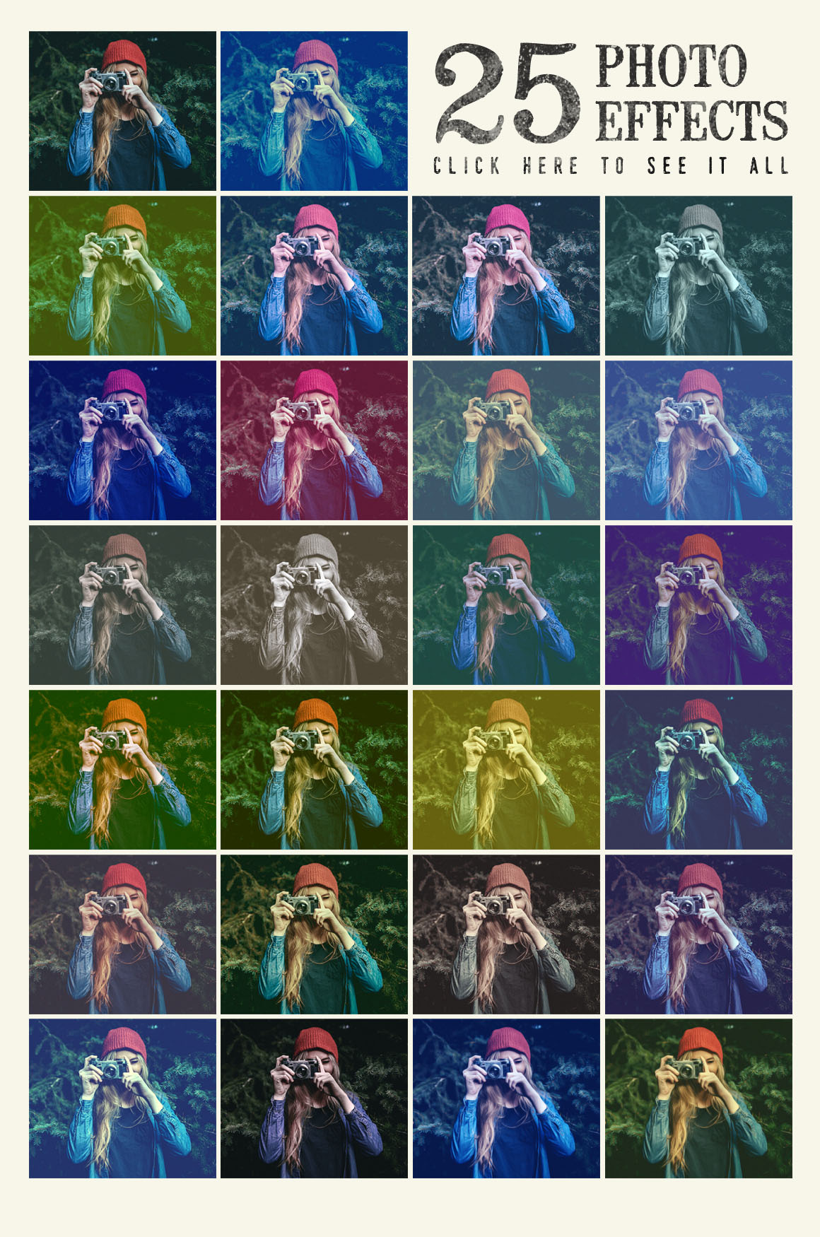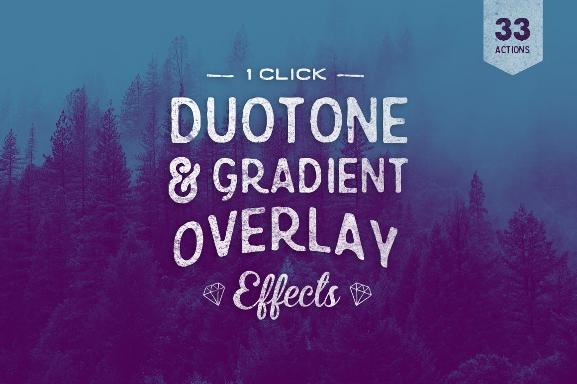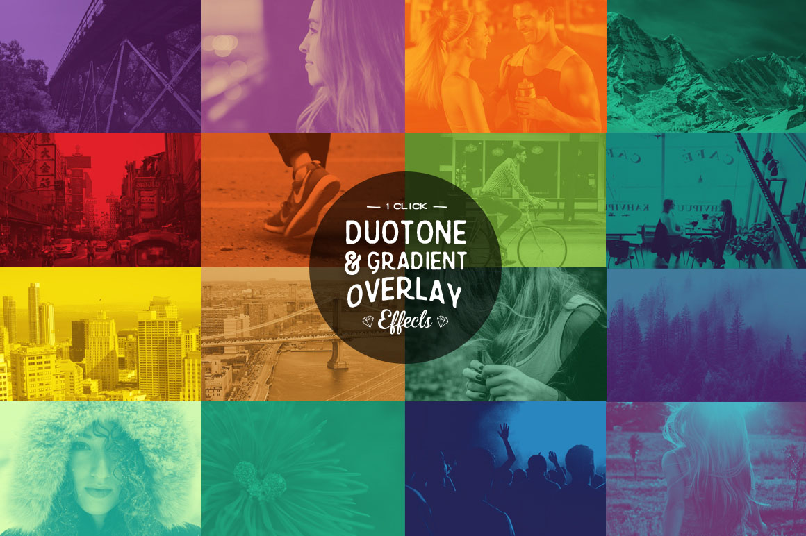 Our Duotone & Gradient Overlay Effects includes 33 unique Photoshop actions to give your projects a burst of color! Vibrant jewel tones and unique color combinations were carefully selected and crafted by hand. All effects are adjustable with basic Photoshop knowledge. Colors can be adjusted to match brand look and feel. Use on photos, paintings or illustrations – get creative and have fun!