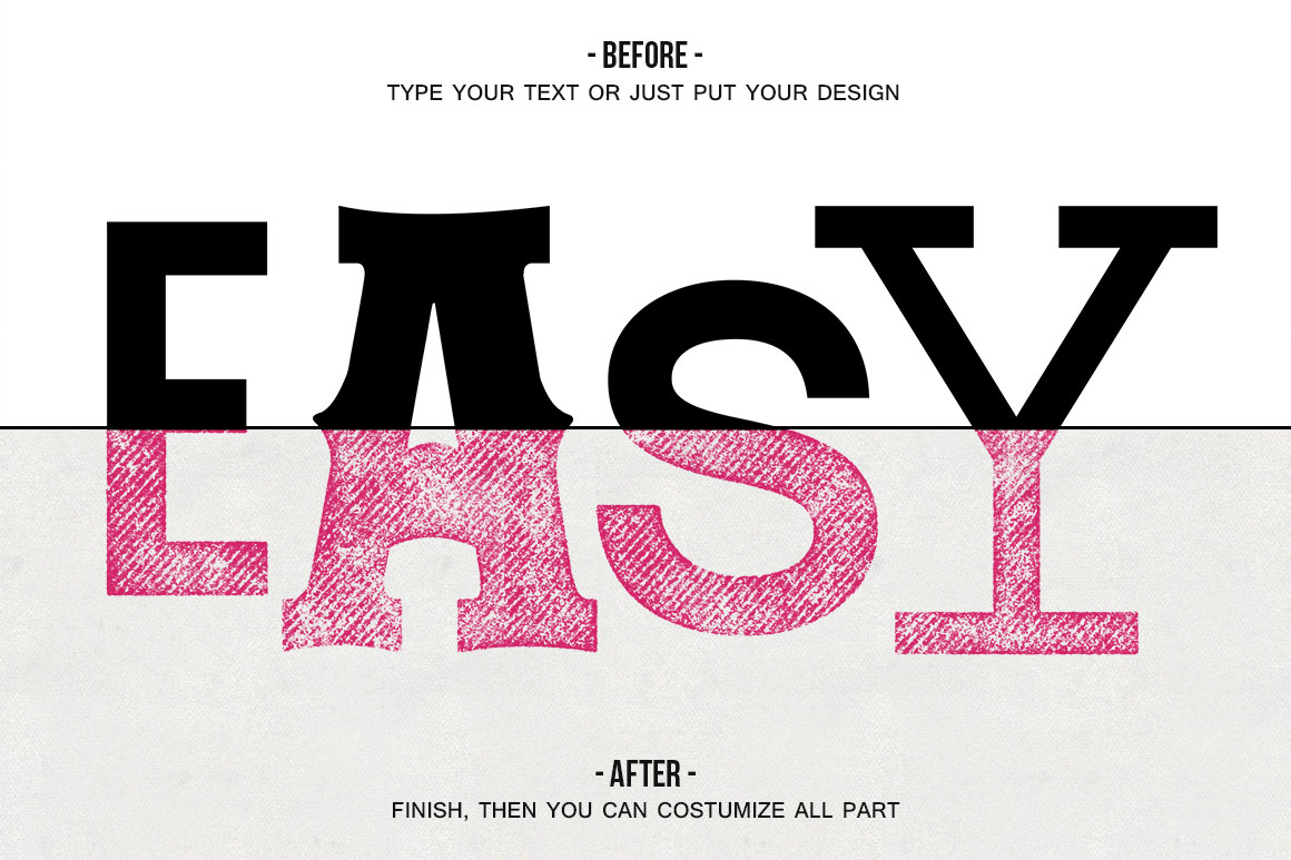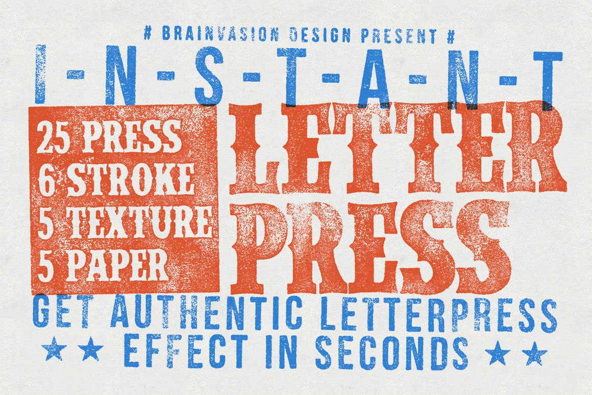 “Instant Letterpress” is designed to give an authentic letterpress effect to your design in seconds. It’s made with organized layer and unique setting to make a perfect effect and still easy to use. Buy now and make your own letterpress design.