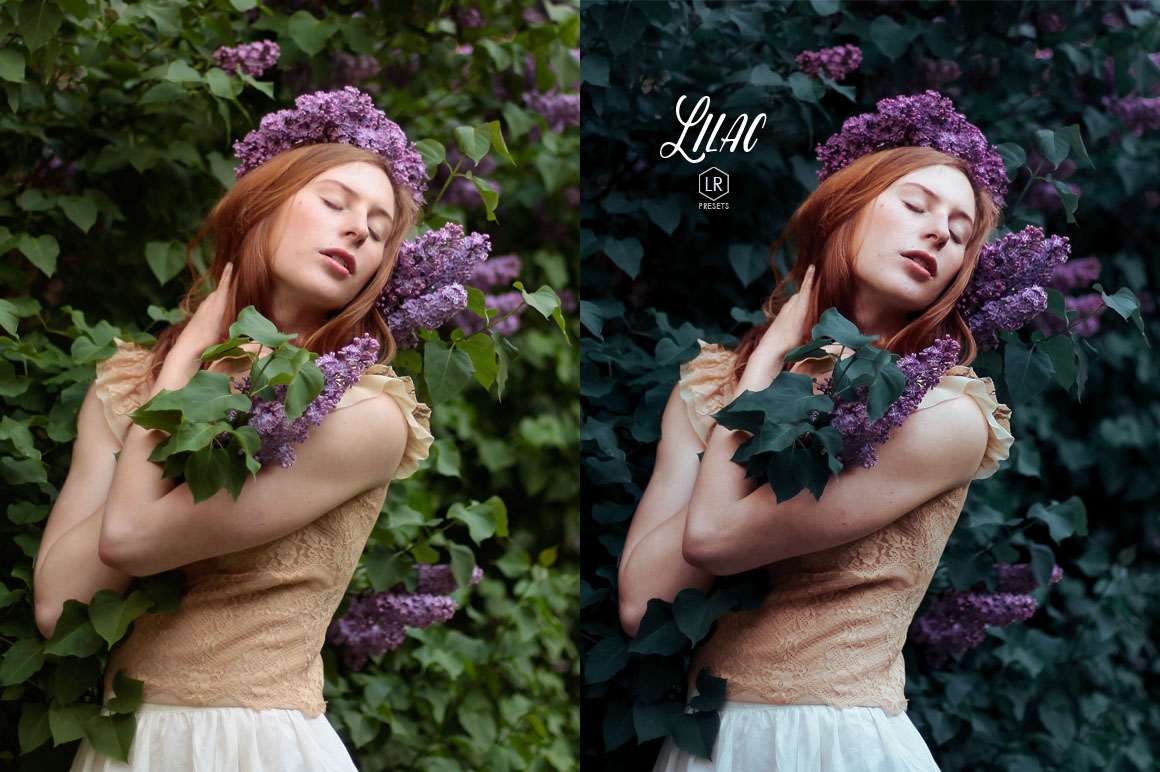 Lilac provides 17 high-quality toning presets for summer/nature portraits with lots of greenery/flowers and adds a moody cold toning (especially to greens). Designed for natural light portraits, Lilac presets are also great for beauty, fashion & fine art photography. The effect may vary, depending on the individual characteristics of the original image. However, Lilac provides a large selection of pre-made variations to match different lighting conditions and white balance settings.