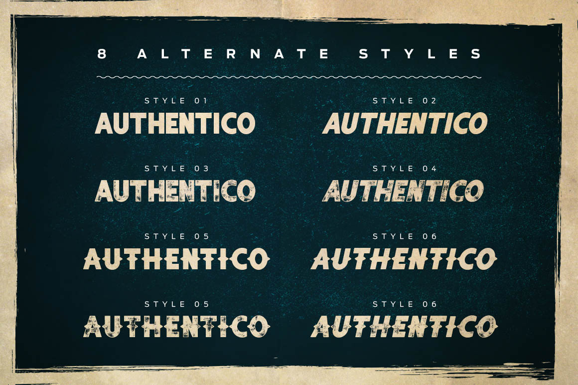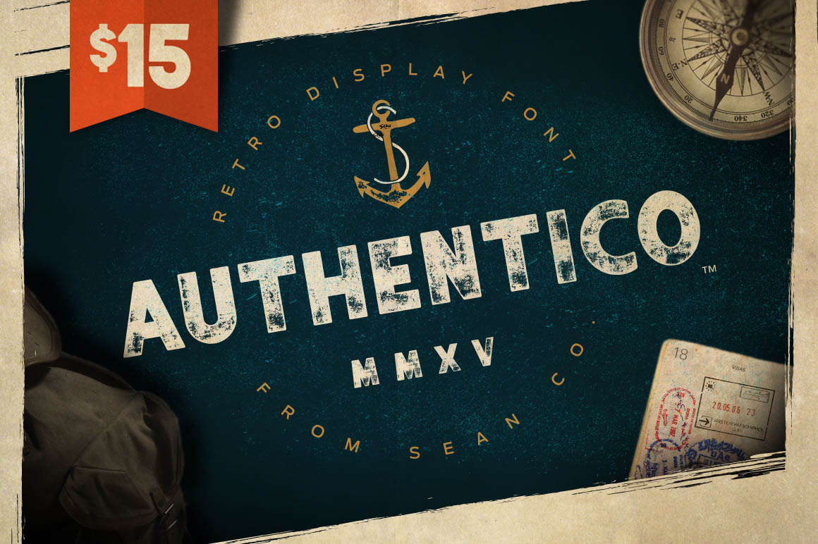 Authentico Display Font was inspired by vintage poster typography. The letter forms have slight quirks to them, giving this bold sans-serif display font a perfect imperfection. This font is perfect for logos, badges, clothing, signage, posters, and much more!