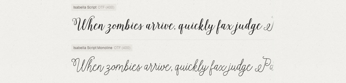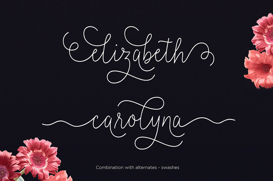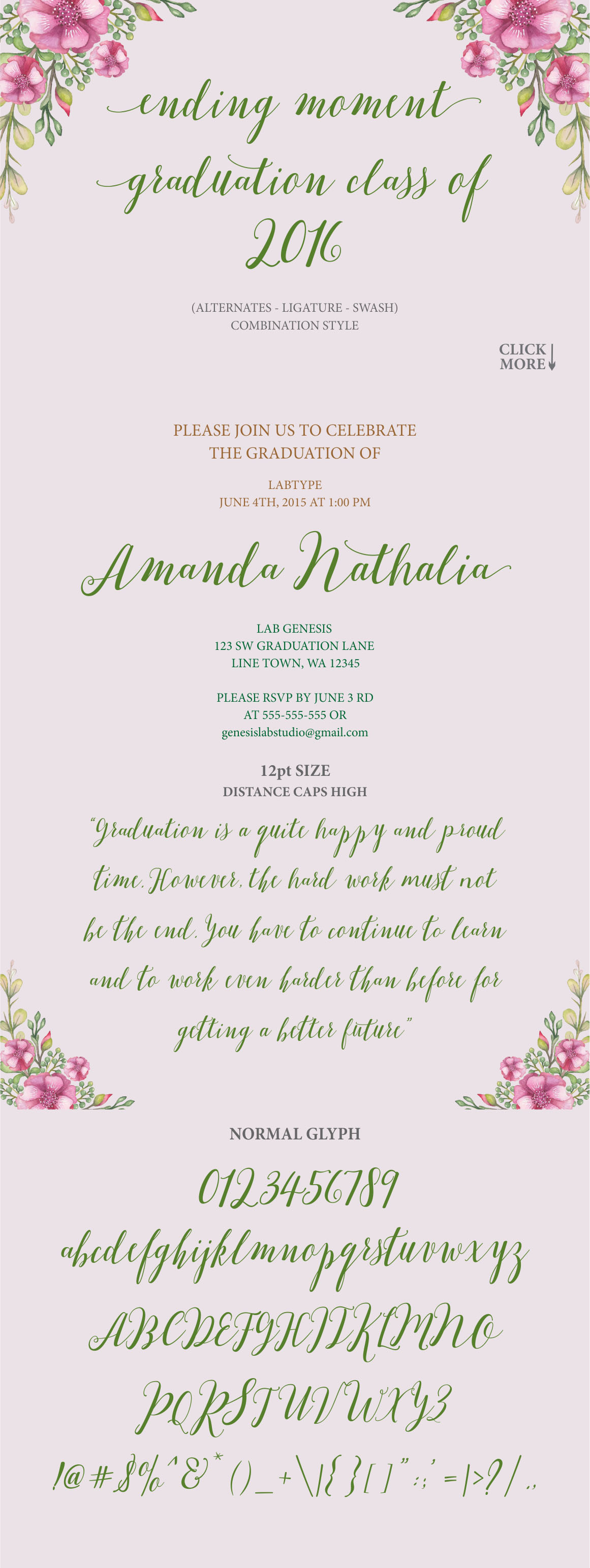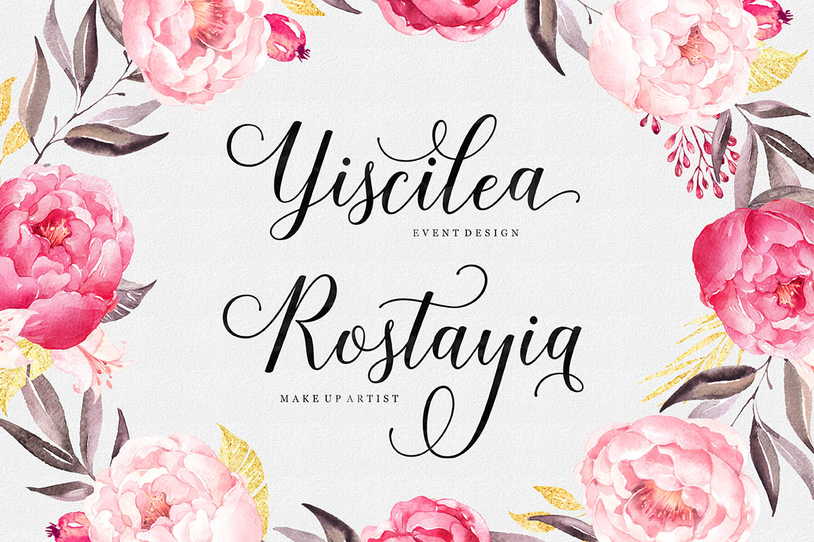Isabella Script is handwritten stylish copperplate calligraphy fonts, combines from copperplate to contemporary typeface with a dancing baseline, classic and elegant touch. Can be used for various purposes.such as headings, signature, logos, wedding invitation, t-shirt, letterhead, signage, lable, news, posters, badges etc. Isabella Script features 420+ glyphs and 169 alternate characters. including initial and terminal letters, alternates, ligatures and multiple language support.