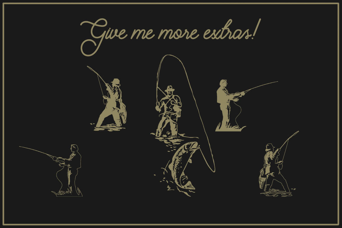 This is a hand drawn and real good typeface with many extras. Playful, modern, and multi-purpose. Works great applied to logos, prints, quotes, magazine headers and clothing. Actually most applications! Also as an extra, I added six drawn fishermen which perfectly complement this font.