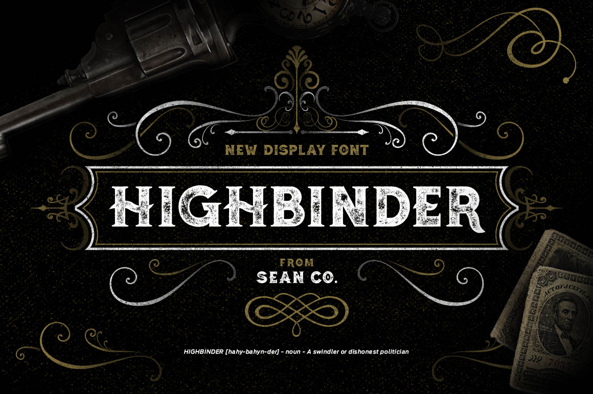 Highbinder Display Font is the newest font from SEAN Co. and was inspired by prohibitionist era typography. The font comes in a clean and rough style (WARNING: the rough font file is quite large so give it a second to install), supports latin languages, and is perfect for Logos, Posters, Mock-Ups, and much more!