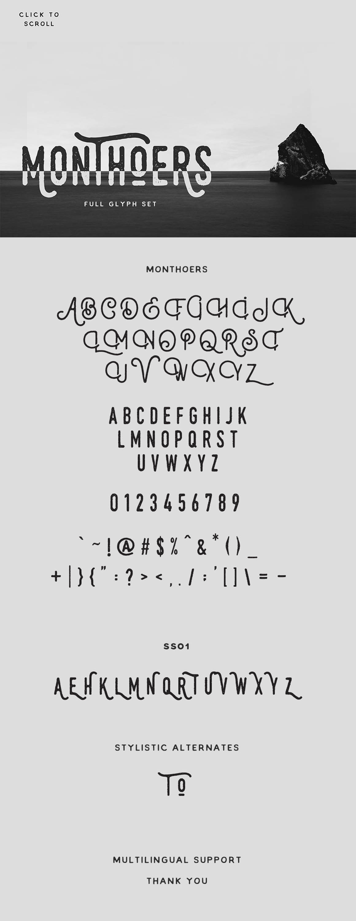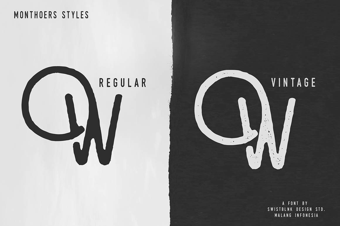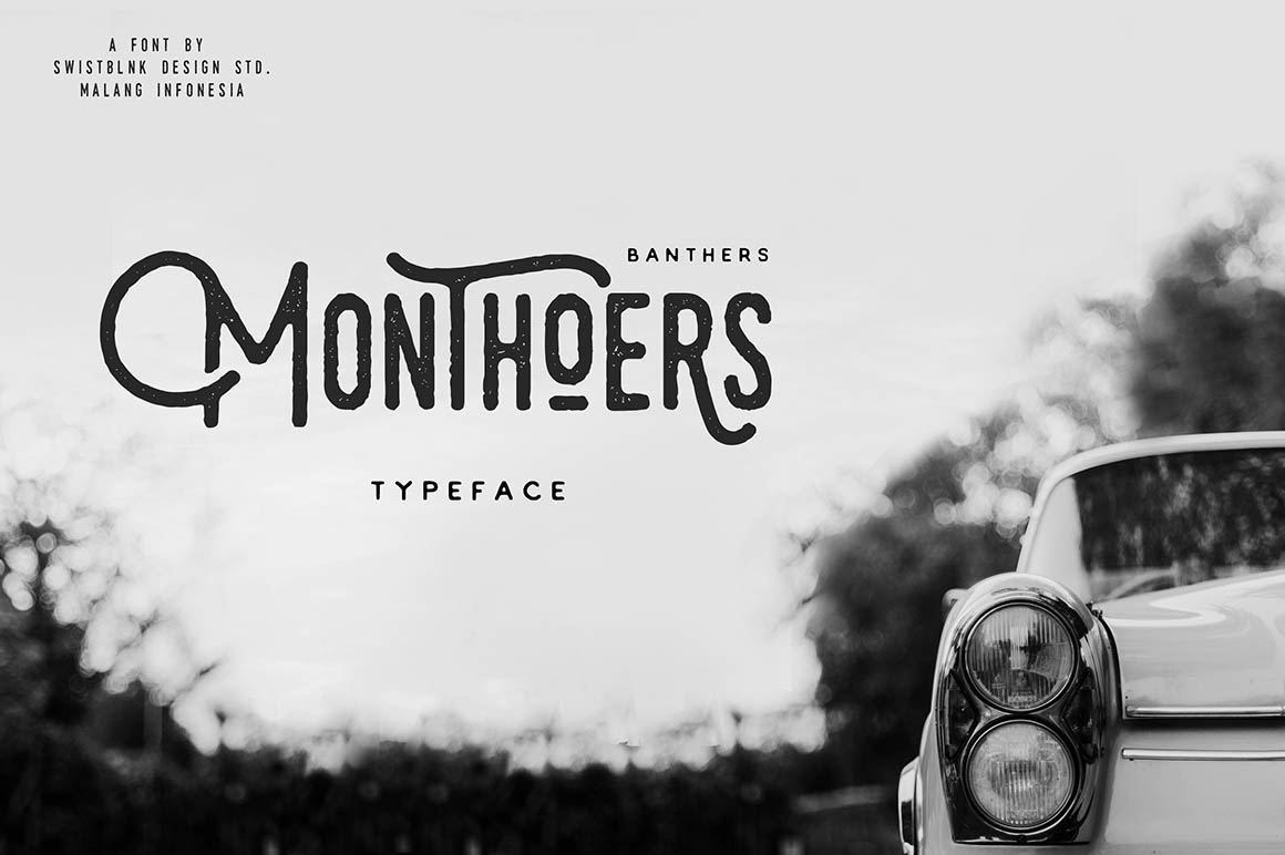 Monthoers is handmade modern vintage textured display typefaces, which is combining the style of classic typography with an modern handlettering style.