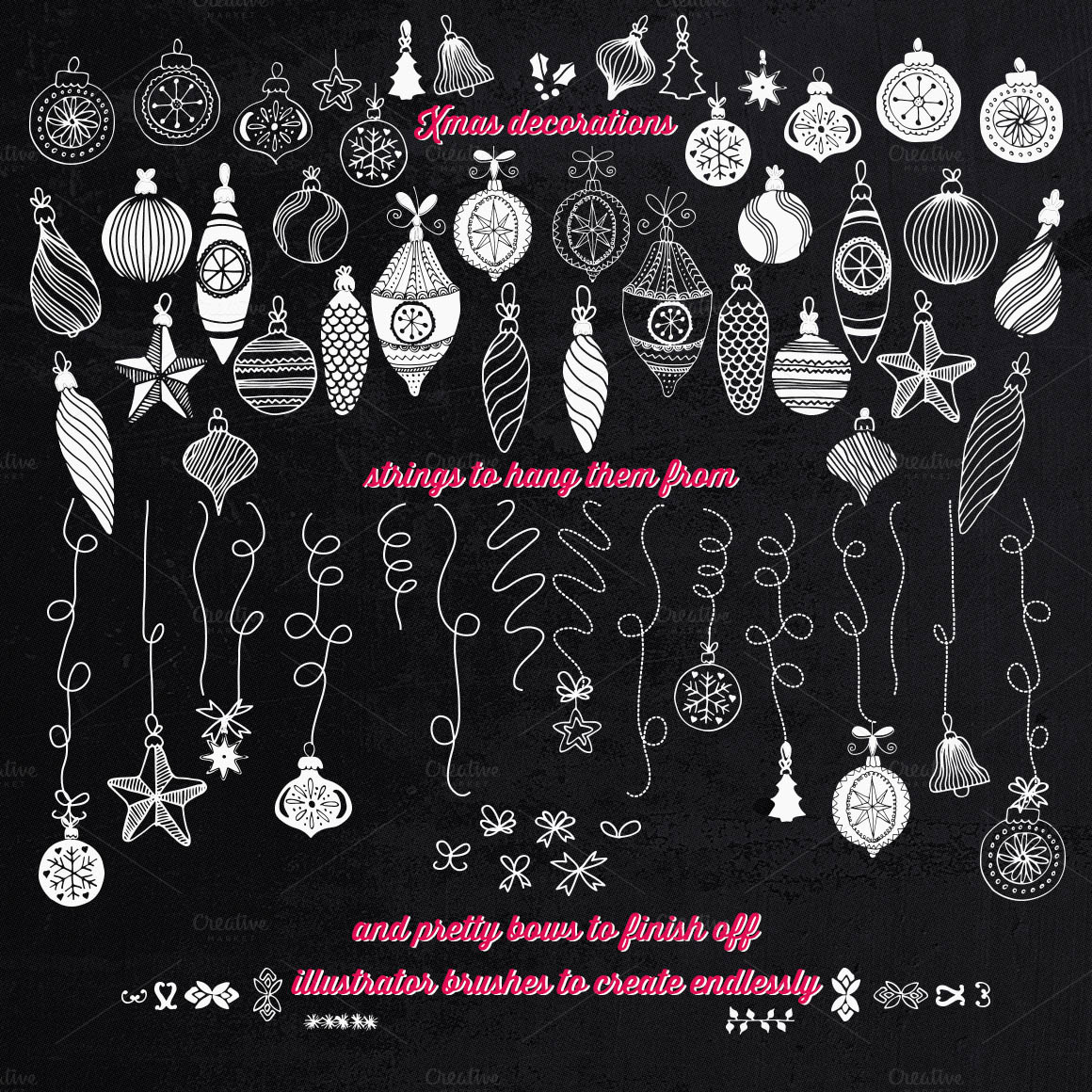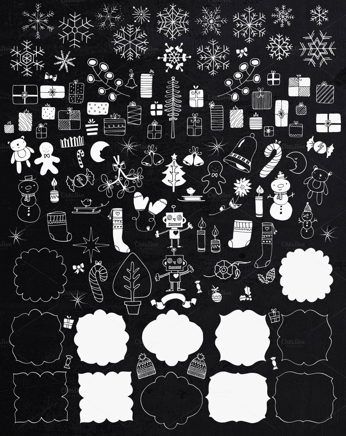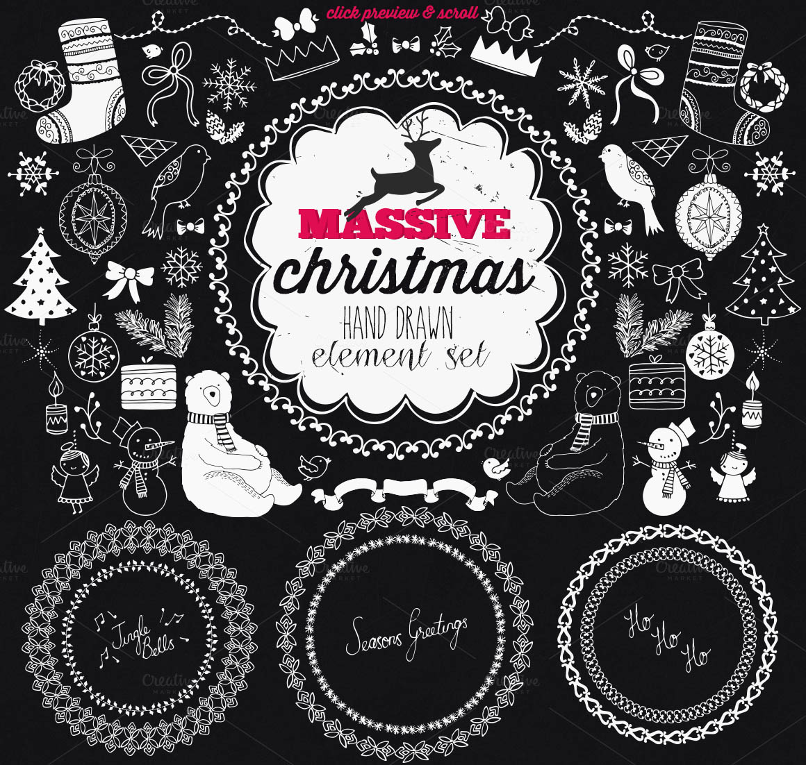 A HUGE Hand drawn Designer’s Element Kit for Christmas – includes 100’s of beautiful hand drawn elements, including presents, birds, wreaths, snowmen, arrows, swirls, laurels, frames, candy canes, squirrels, snow globes, a bear, borders, leaves, flowers, decorations, strings, bows, toys, deer and banners/ribbons. Also includes Illustrator brushes to create an endless array of beautiful designs.