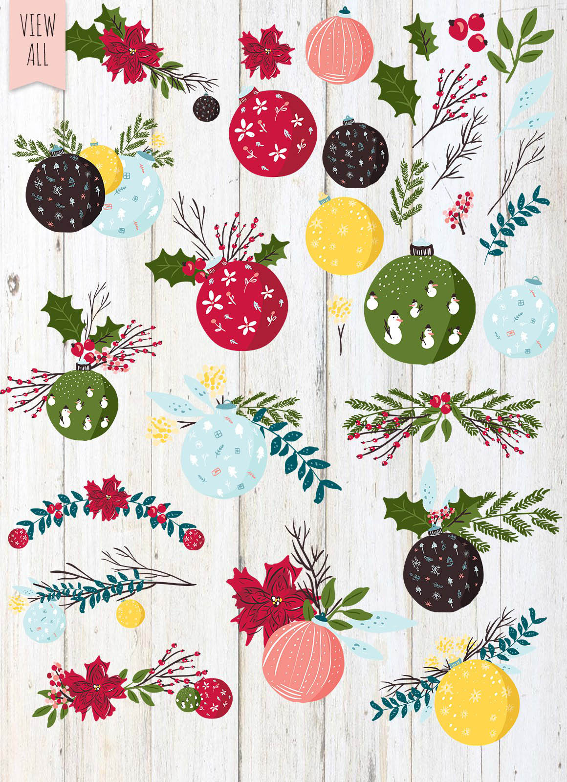 Our Christmas Digital Clip Art includes 27 PNG files with transparent backgrounds, 27 JPEG’s and a fully editable EPS file. Each image is high res 300dpi.