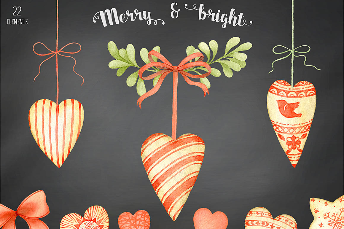 4. Shabby Christmas Clipart Set by WatercolorNomads