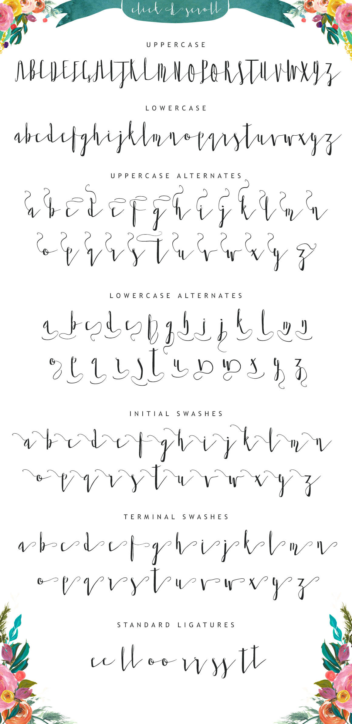A sleek hand drawn calligraphy script with initial and terminal swashes, and alternate upper and lower swashes. Included is the Standard, Alternates and Swashes. Please click and scroll image 2 to see all that is included. Please install all 3 font files to use all features. The initial swashes are accessed using Uppercase (shift) and the Upper Alternate swashes are accessed using Uppercase (shift).