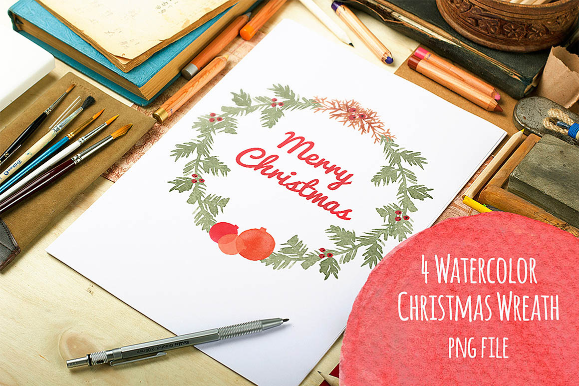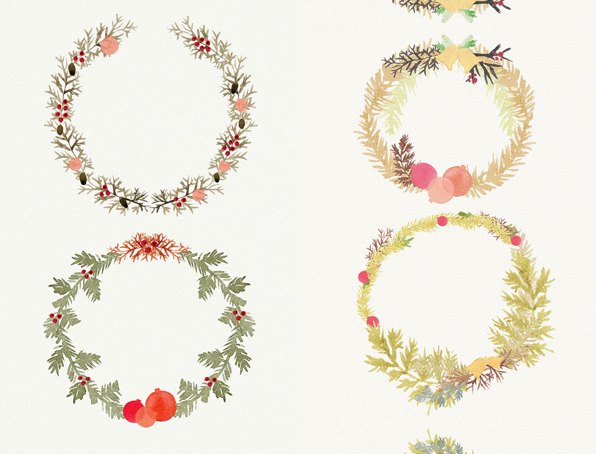 4 Christmas Wreath – Ideal for invitations, handmade craft items, scrap booking, printed paper items and more. 4 x png file – 300 dpi.