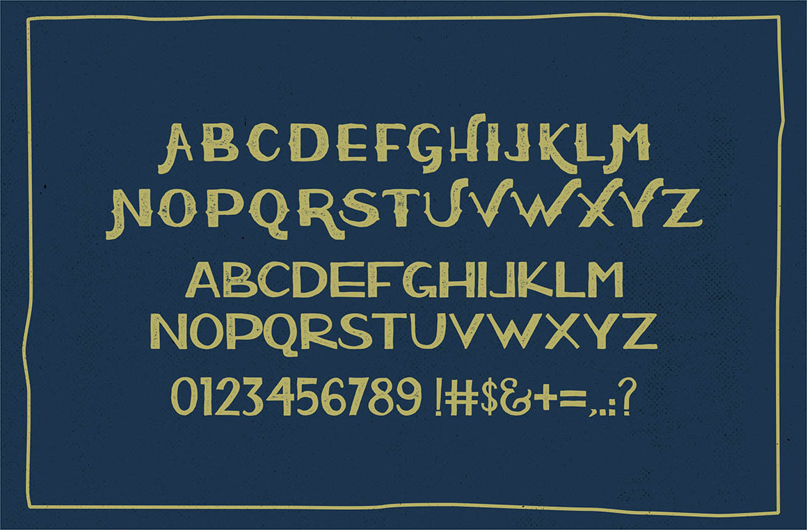 Wolder Typeface is hand drawn font with minimalistic and vintage feel character set.This font good for vintage design, badges, t-shirt, logo, labels, posters and etc. Features: Uppercase -Lowercase -Numerals -Basic punctuations Available in .OTF and .TTF formats.