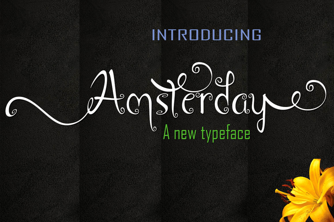 Amsterday typography is a different character, specially designed separately with the top line. Matches To meet the needs of design project further. Can be used for various purposes.such as the title, signature, logo, correspondence, wedding invitations, letterhead, signage, labels, newsletters, posters, badges, etc.Amsterday features 481 glyphs and has given PUA unicode also supports in pragram, Adobe Illustrator, Adobe Photoshop, Adobe InDesign, Corel Draw X version, Microsoft Word, Support International Language.