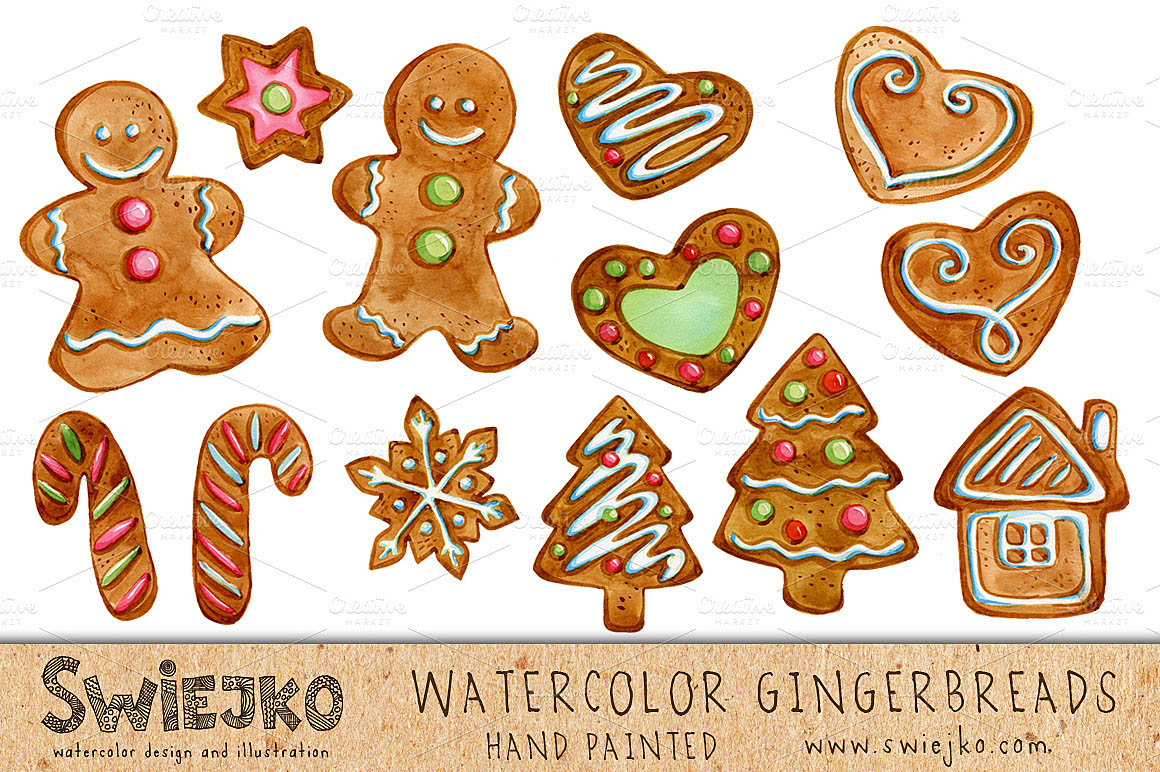19. Watercolor Gingerbreads, Christmas by Swiejko