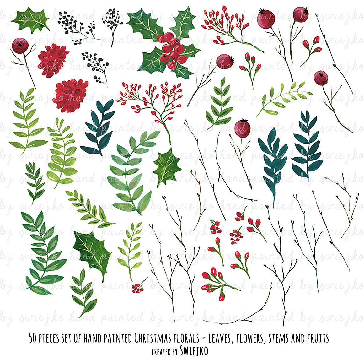 Watercolor Christmas Clipart – hand painted leaves, stems and fruits. It will be perfect illustration for your christmas cards, christmas tags and your other holiday ideas! Size approximately: 1×1 up to 4.5×4.5 inches (2.5×2.5 up to 11.5×11.5 cm). Graphic is a PNG file, 300 dpi, without background. Every image is a separate png file.