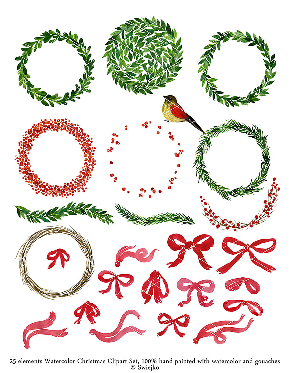 Watercolor Christmas Clipart – hand painted wreaths and other floral elements It will be perfect illustration for your Christmas cards, Christmas tags and other your Holiday ideas! Size approximately: 2×2 up to 7×6.5 inches (5×4.5 up to 18×17 cm). Graphic is a PNG file, 300 dpi, without background. Every image is a separate png file.