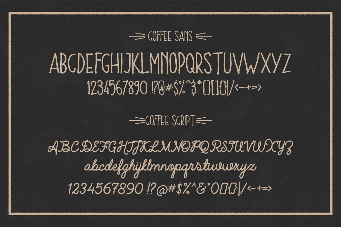 Coffee Fonts Pack Handmade script & sans font. Including a tons of glyphs, initial and terminal letters, alternates, ligatures.