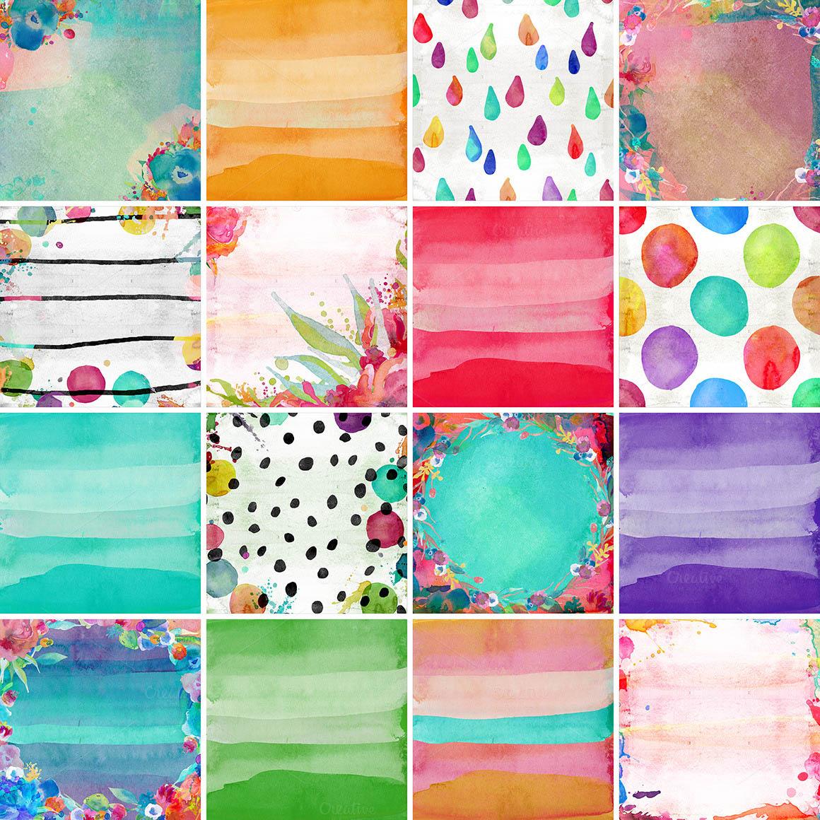 A brand New gorgeous pack of 16 backgrounds, hand painted watercolor style. Backgrounds are 12 inches x 12 inches, High res 300 ppi.