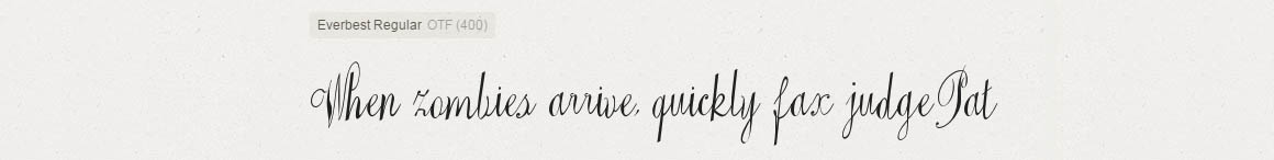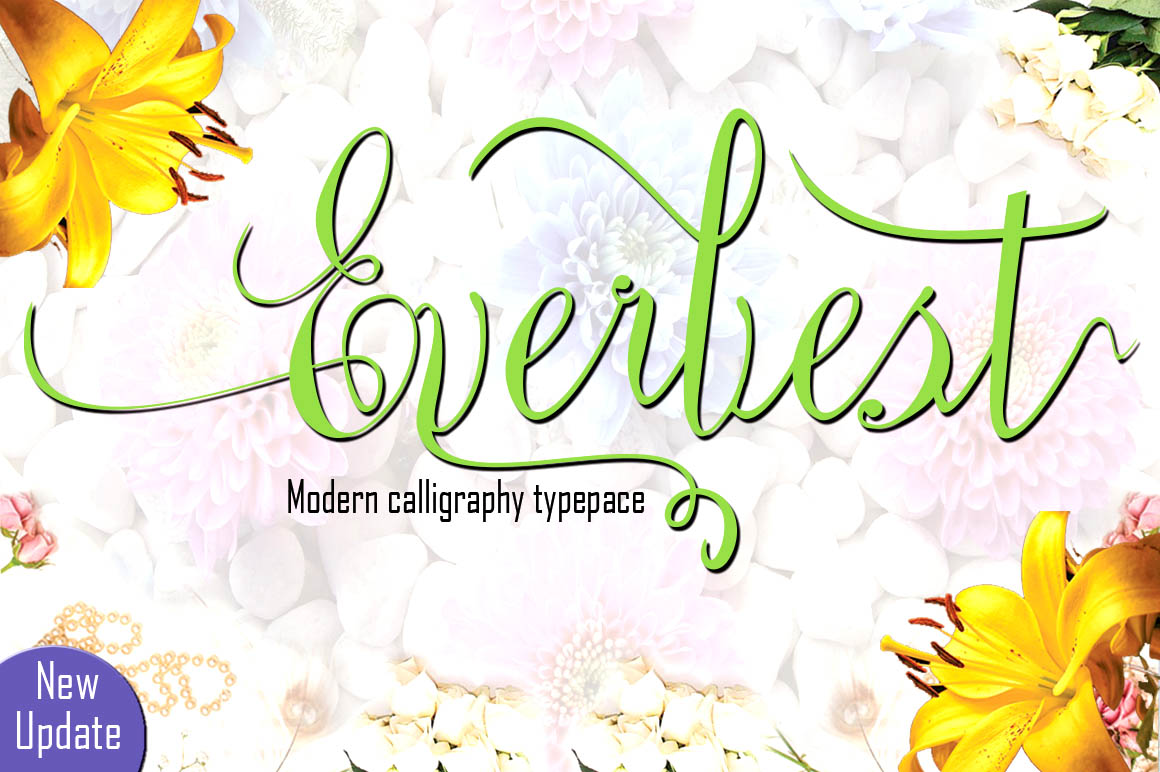 Everbest Script font calligraphy is modern with smooth lines, pointy-edged pull pens, a blend of classic and modern and elegant touch. Can be used for various purposes.such as the title, signature, logo, correspondence, wedding invitations, letterhead, signage, labels, newsletters, posters, badges, etc.Everbest Script features 389 glyphs and has given PUA unicode also supports in pragram, Adobe Illustrator CS, Adobe Photoshop, Adobe InDesign, Corel Draw X version, Microsoft Word, Language Support : Albanian, Basque, Breton, Chamorro, Danish, Dutch, English, Faroese, Finnish, French, Frisian, Galician, German, Icelandic, Italian, Malagasy, Norwegian, Portuguese, Swedish. Everbest Scripthas been updated, there is the addition of several features and fine lines and letters of different styles.